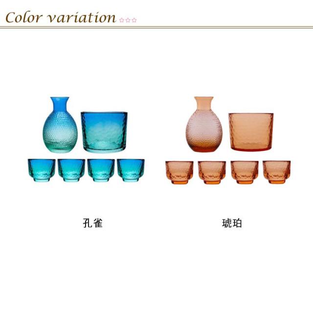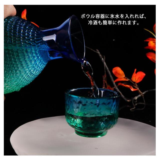 | サイズについての説明 | 【徳利】容量:300ml サイズ:4.1*12.3cm 【冷酒器】容量:600ml サイズ:11.5*9cm 【盃】容量:50ml サイズ:5.2*4.5cm |