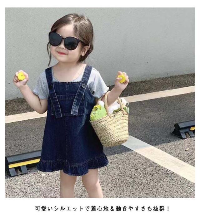 オーバーオール キッズ ベビー服 デニム スカート 女の子 ジャンパースカート サロペット つなぎ サロペット ジャンスカ サロペットワンピース 韓国子供服 オールインワン 春夏 可愛い 子供 レイヤード 80 90 100 110 120 130