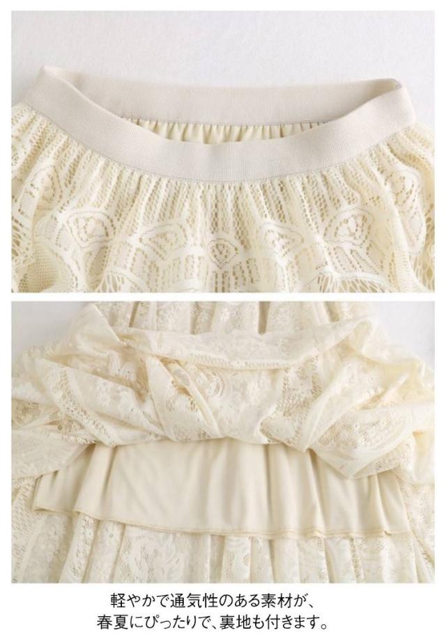 レーススカート ロングスカート フラワー刺繍 スカート レース Aラインスカート ハイウエスト フレア スカート マキシスカート 裏地付き 春夏 春 おしゃれ 送料無料