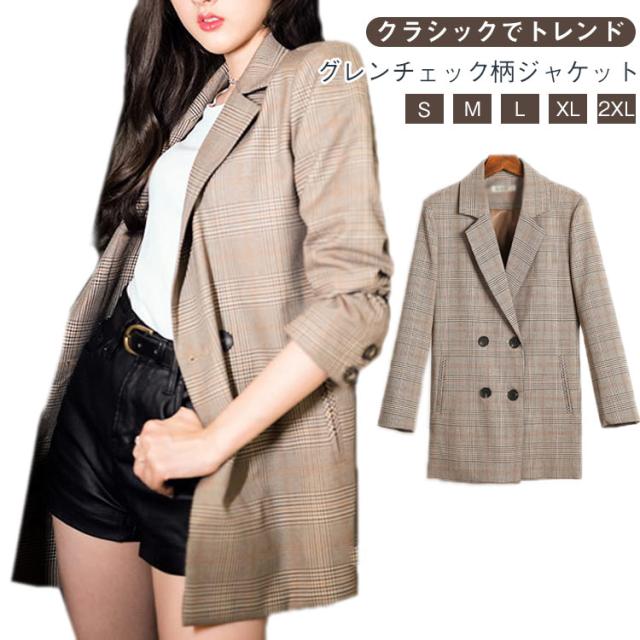テーラードジャケット レディース コート アウター 薄手 長袖 グレンチェックジャケット スーツジャケット ライトアウター 羽織り お洒落 可愛い 春服 秋服 オフィス 通勤 送料無料