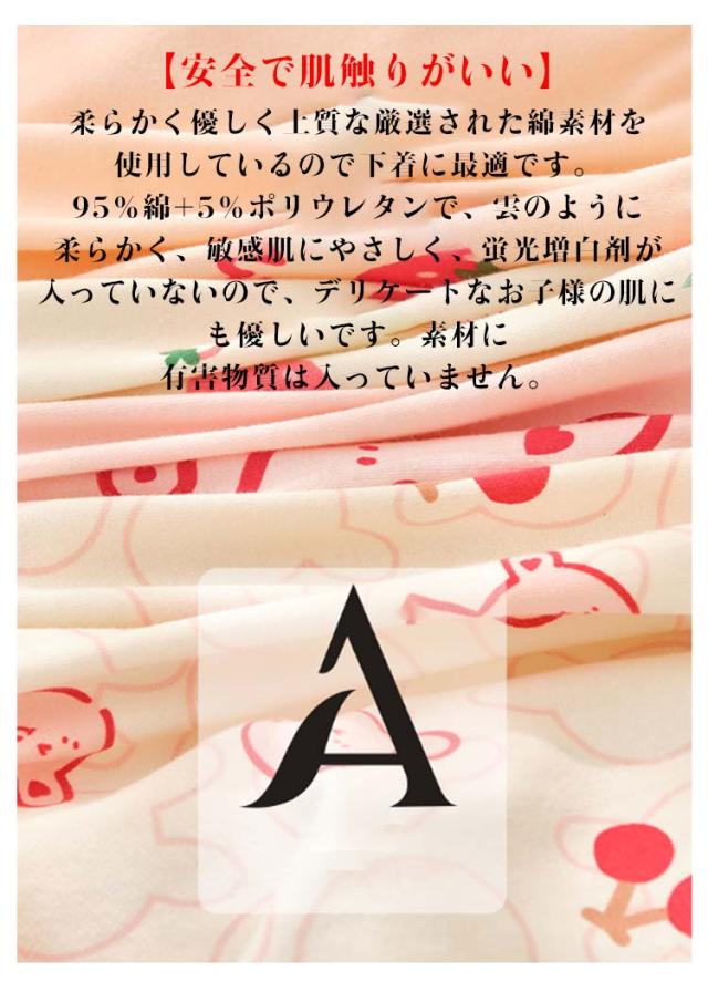| 【可愛いプリント柄】 かわいい色柄が勢揃いしているので、お子様を喜ばせます!入園・入学準備アイテムとしてもピッタリです。 【安全で肌触りがいい】 柔らかく優しく上質な厳選された綿素材を使用しているので下着に最適です。95%綿+5%ポリウレタンで、雲のように柔らかく、敏感肌にやさしく、蛍光増白剤が入っていないので、デリケートなお子様の肌にも優しいです。素材に有害物質は入っていません。 【消臭、抗菌】 肌触りの気持ち良さと自然繊維の暖かさが生み出す効果でぐっすりと深い眠りにつくことができます。 吸水性や通気性が優れているので、消臭、抗菌作用もあります。 【吸湿性&通気性】 クロッチ部分は2重になっており、吸湿性&通気性が抜群な生地を採用しているので肌触りが良く気持良いです。しっかり素材なので、耐久性があり、お洗濯に強く、水洗いしての繰り返し使用も可能です。 【ストレスフリー】 裾は圧迫感のない柔らかい弾力性のある糸を使っています。装着部をゆったりと包み、きつく締め付けることはありません。快適さが一層増します。 | |