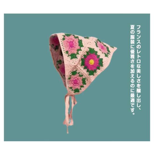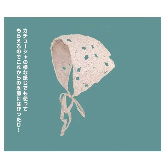 | 【小顔効果】【全20柄】 さっとかぶれて簡単楽々三角巾タイプのバンダナ。 透かし編みにしたデザインがとても繊細でお洒落です。 カチューシャの様な感じでも使ってもらえるのでこれからの季節にはぴったり! フランスのレトロな美しさを醸し出し、夏の服装に優雅さを加えるのに最適です。 コンパクトになりますので持ち運びにも便利。 | |