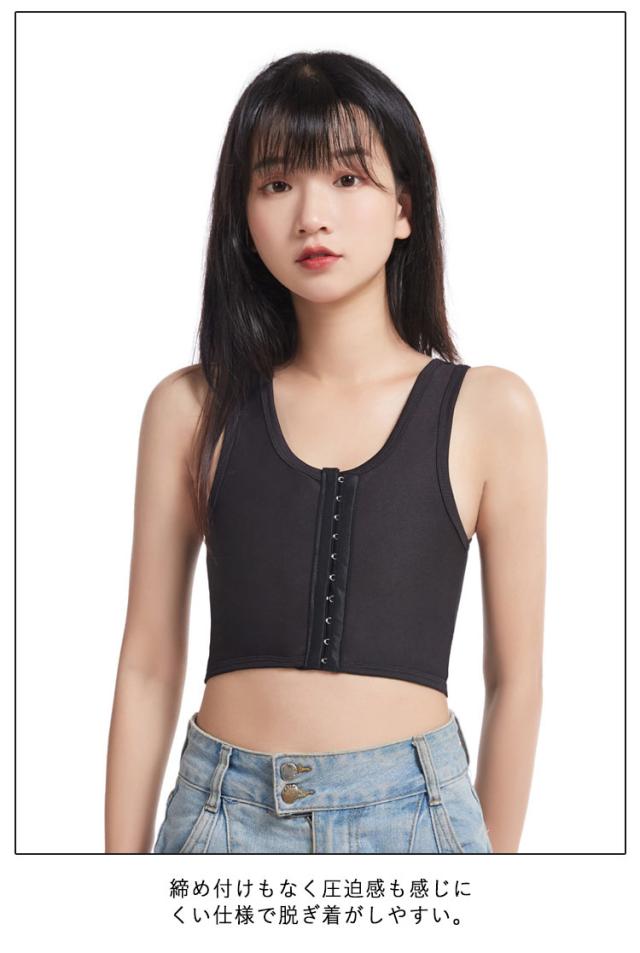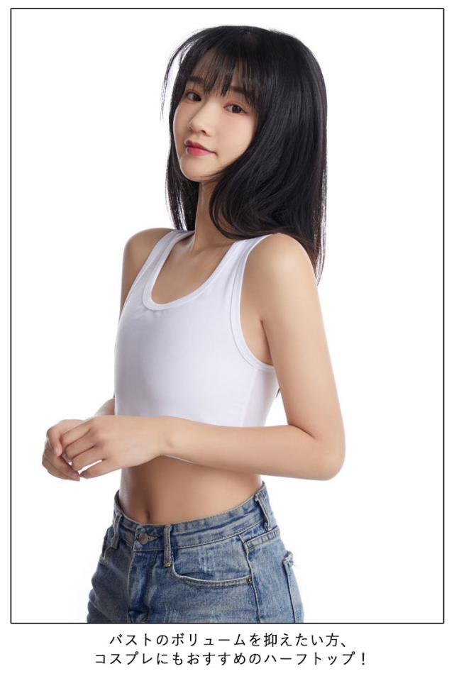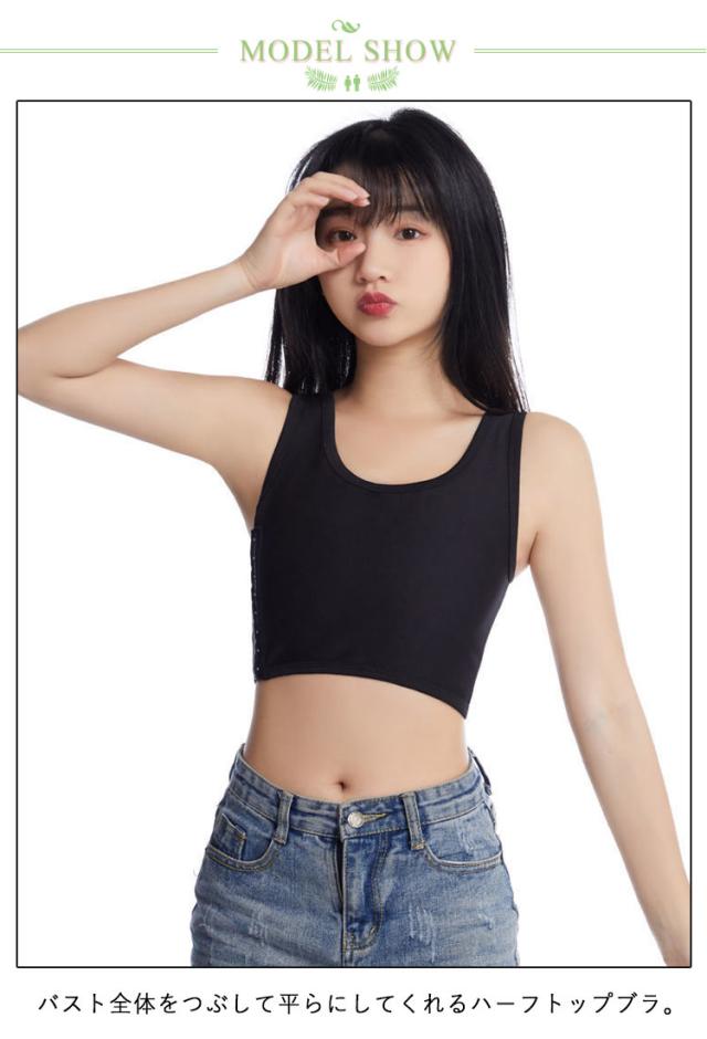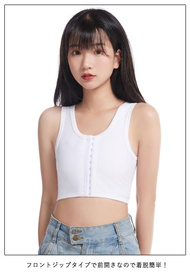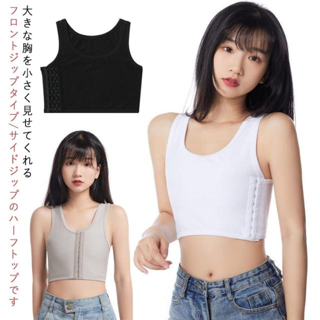 | 大きな胸を小さく見せてくれるフロントジップタイプ/サイドジップのハーフトップです。 バスト全体をつぶして平らにしてくれるハーフトップブラ。 全体を締め付けずに胸をしっかりとつぶします。 締め付けもなく圧迫感も感じにくい仕様で脱ぎ着がしやすい。 フロントジップタイプで前開きなので着脱簡単! シンプルデザインのフィット感&通気性抜群のハーフトップ。 ショルダー部分は締め付けがなく伸縮性がありますので、着心地が良いです。 伸びのいい生地がバストをしっかりホールド。 バストのボリュームを抑えたい方、コスプレにもおすすめのハーフトップ! コーデの邪魔にならないのも嬉しいです! | |