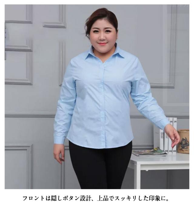 | シーンを選ばない、定番の大きいサイズワイシャツ。 無駄を無くしたすっきりスタイル、スカートにもパンツスタイルにも合わせやすくなっています。 オフィスや 会議・打ち合わせ、面接、冠婚葬祭、参観日など、どんなシーンにも対応できます。 小さいサイズSから大きいサイズ8XLまでの豊富なサイズ展開、ぽっちゃりさんも自分にピッタリ合うサイズが見つかります。 長袖も半袖も揃っているから、春夏から秋冬までオールシーズン活躍できます。 フロントは隠しボタン設計、上品でスッキリした印象に。 ややストレッチありますから、ストレスなく快適な着心地を実現。 | |