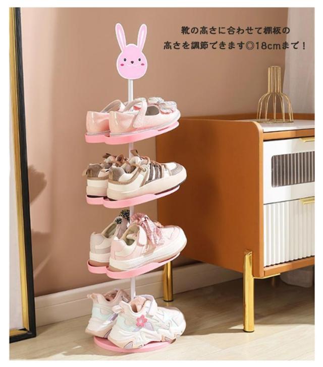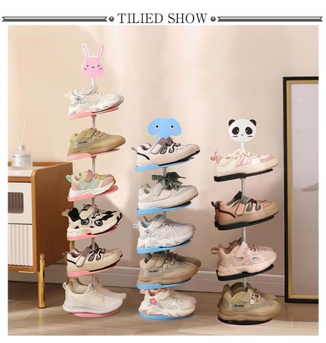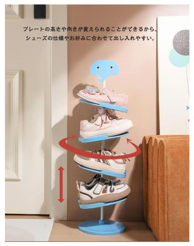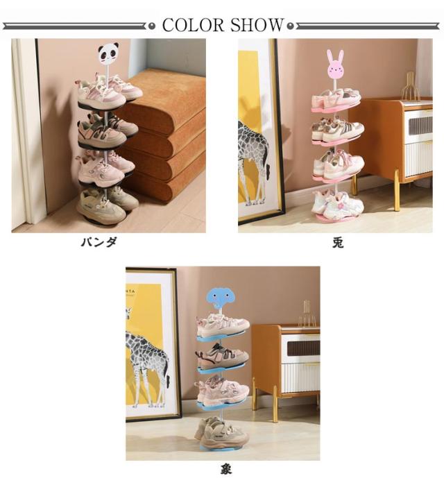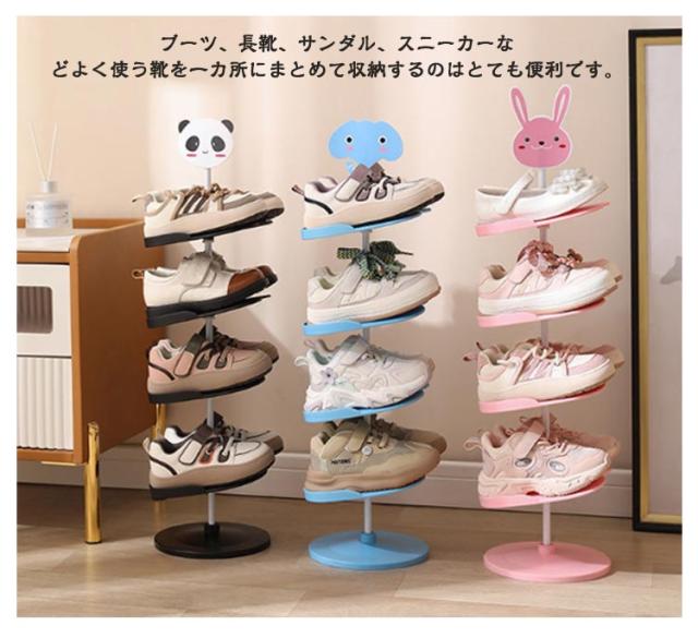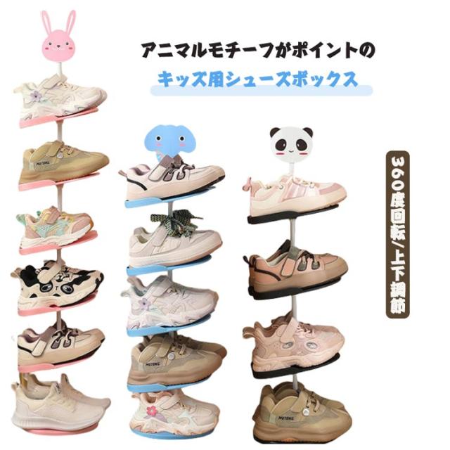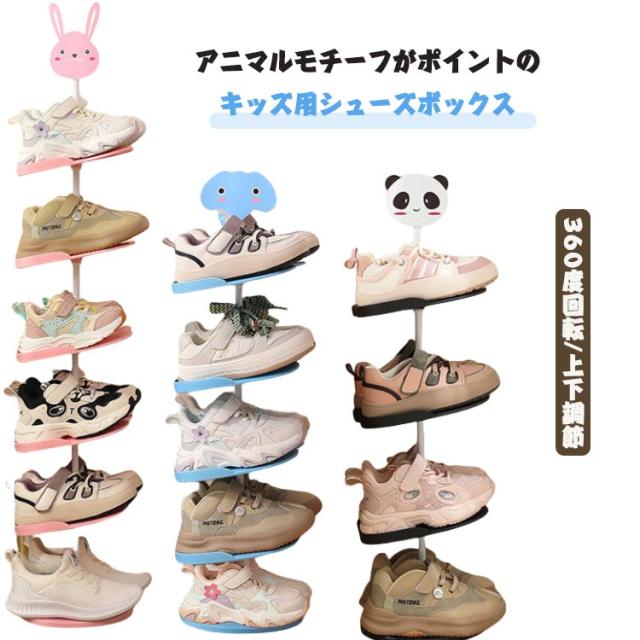 360度回転 キッズシューズラック スリム 4段 5段 6段 子ども用 シューズラック 子供靴 靴箱 5段 下駄箱 玄関収納 収納ラック 子供用 シューズ収納 6段 靴 キッズ用 省スペース シューズボックス アニマル 動物 パンダ ウサギ 象 靴入れ おしゃれ かわいい