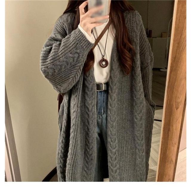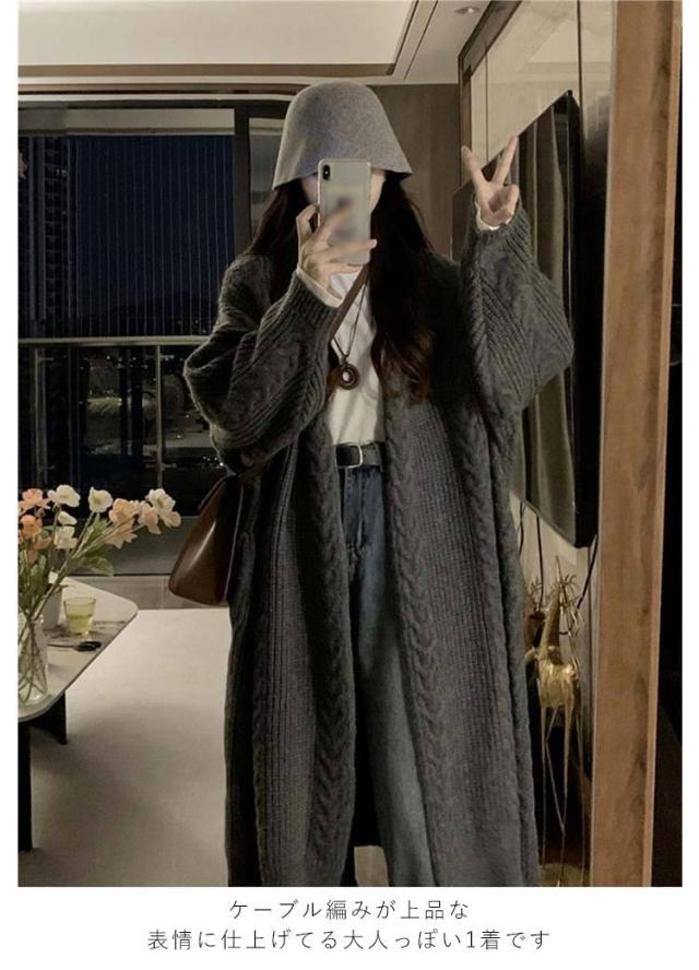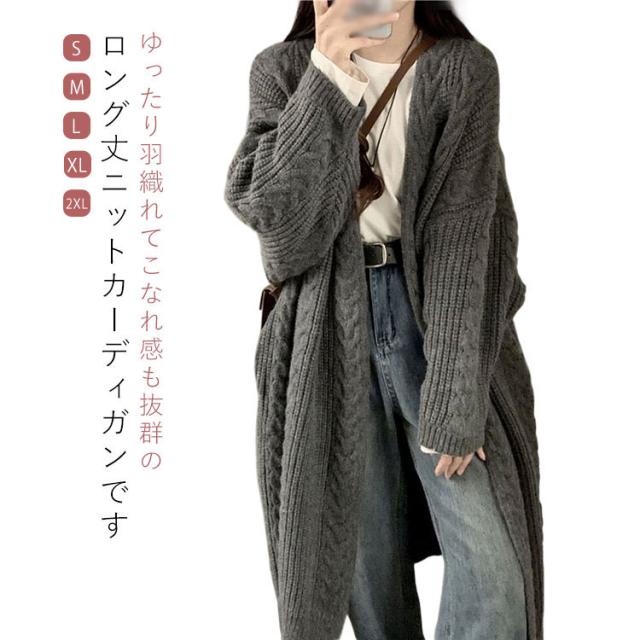 秋 レディース ロング アウター マキシ ニット カーディガン ロングカーデ ニットカーディガン カーディガン ニット 春秋 ロングカーディガン ロングニット 秋冬 ルーズ リブ リブニット 羽織 羽織り 大きいサイズ