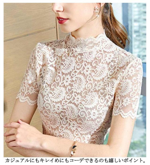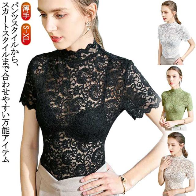 シアートップス レディース レース タンクトップ ハイネック レーストップス 透け感 半袖 シースルートップス インナー 薄手 花柄 刺繍 レース レイヤード 重ね着 カジュアル きれいめ おしゃれ かわいい 春夏 秋冬 送料無料