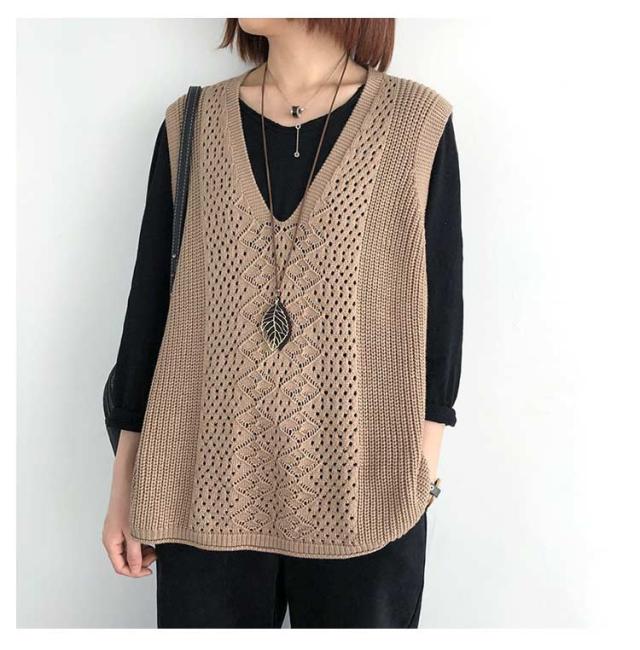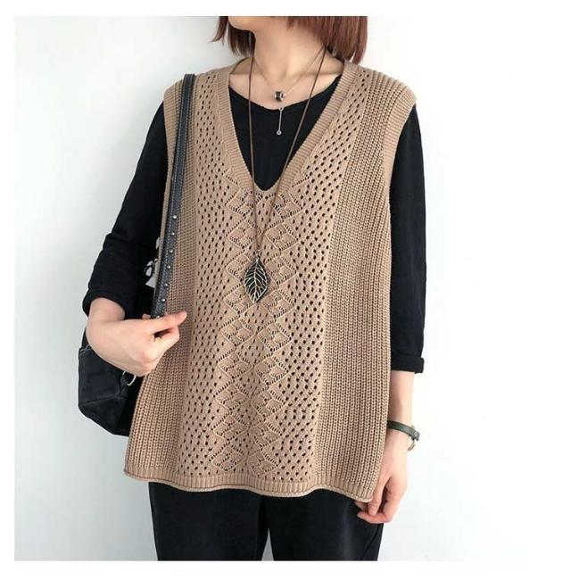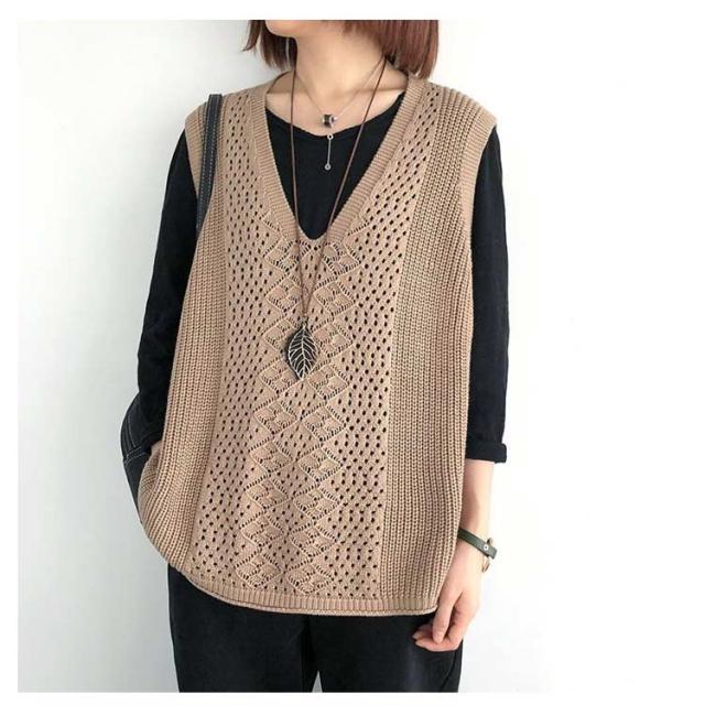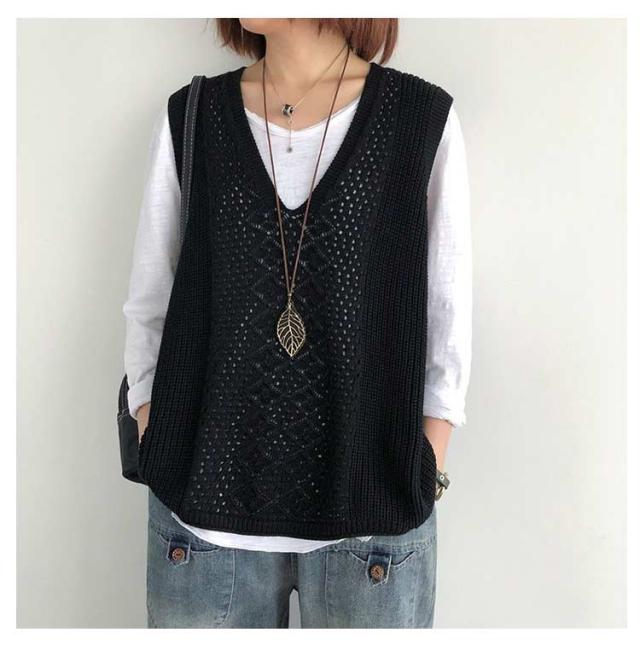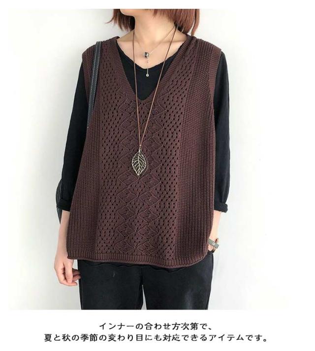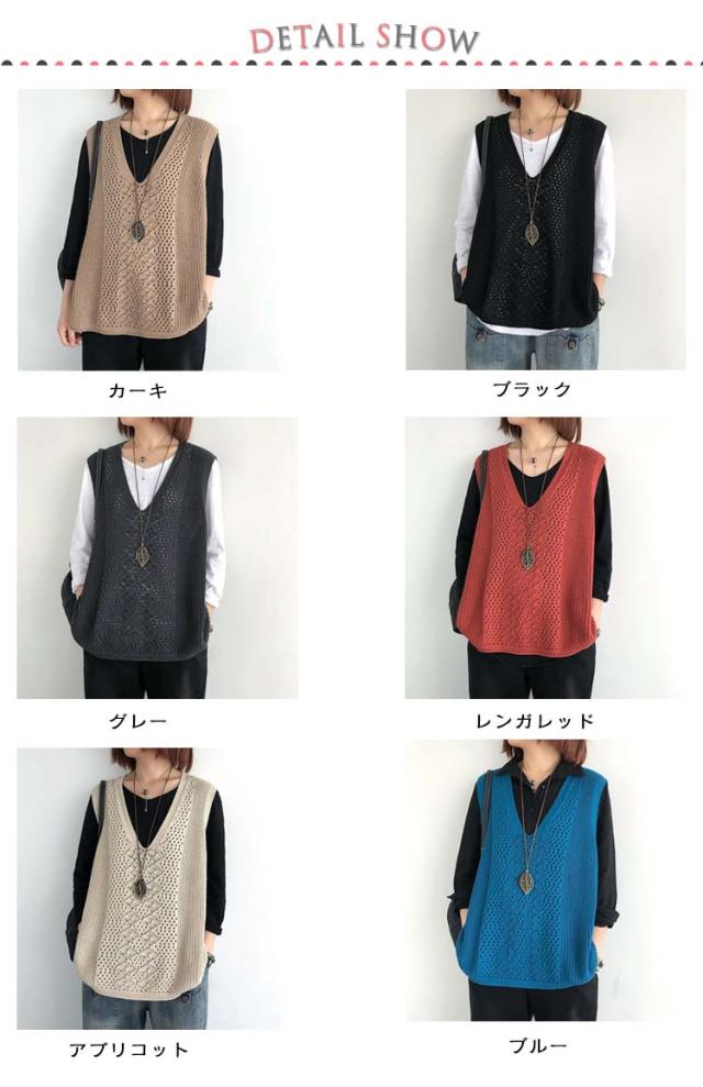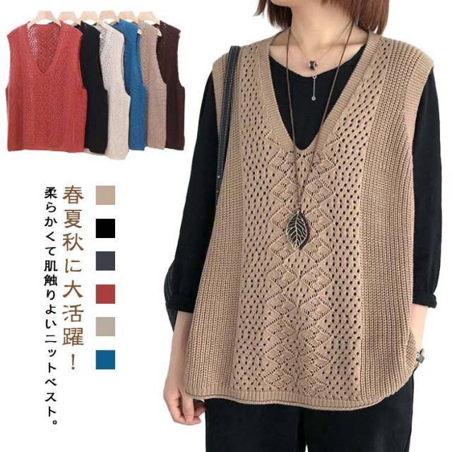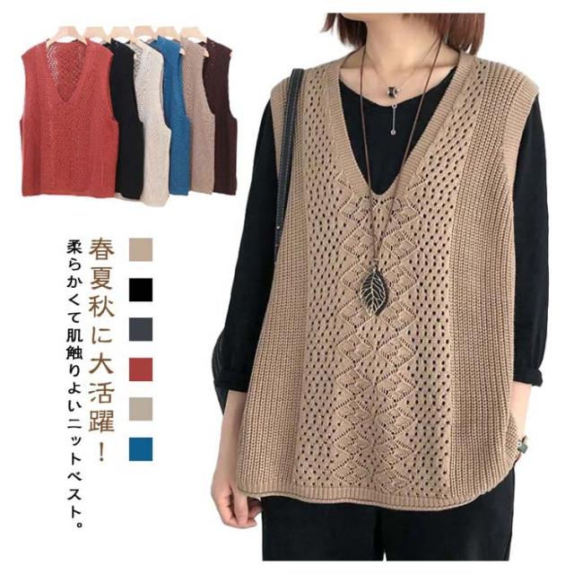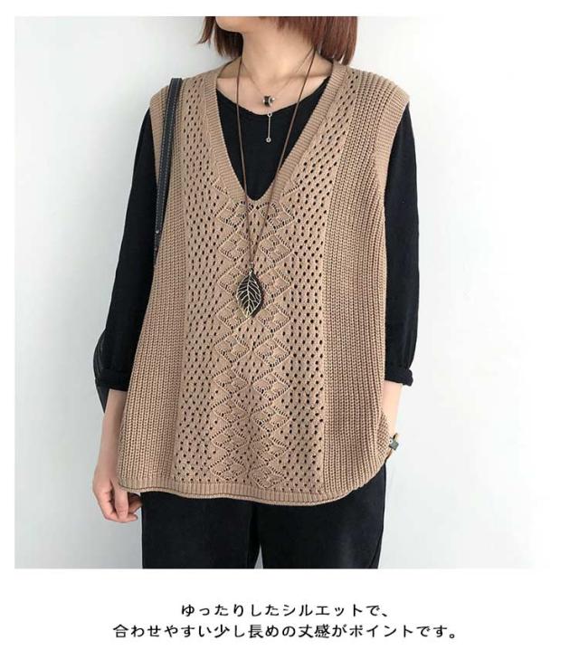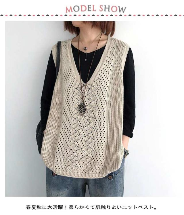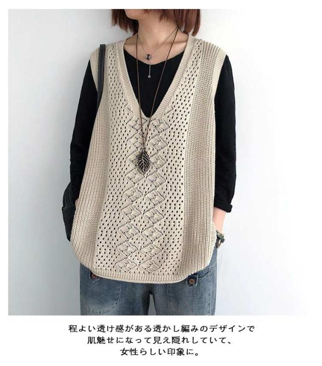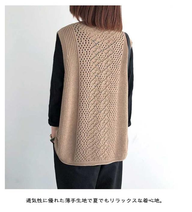 透かし編み ベスト トップス 透かし編み ノースリーブ ニットベスト ゆったり ケーブル編み チョッキ プルオーバー 薄地 春 無地 ミディアム丈 レイヤード 重ね着 カジュアル レディース 夏 秋 カジュアル ニットタンクトップ