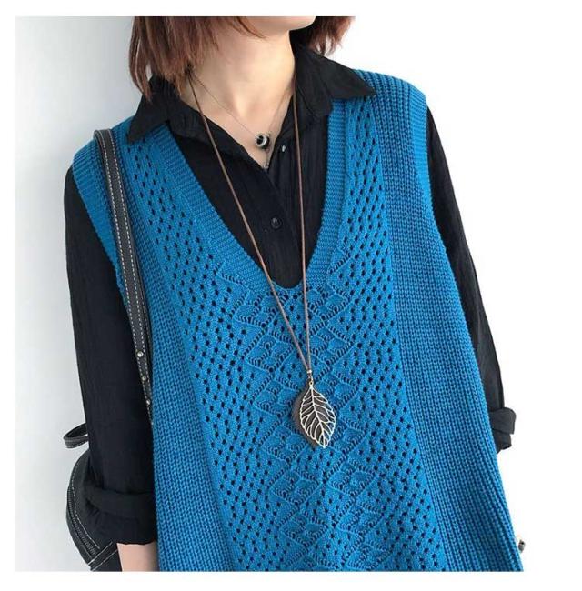 | 春夏秋に大活躍!柔らかくて肌触りよいニットベスト。 通気性に優れた薄手生地で夏でもリラックスな着心地。 程よい透け感がある透かし編みのデザインで肌魅せになって見え隠れしていて、女性らしい印象に。 ゆったりしたシルエットで、合わせやすい少し長めの丈感がポイントです。 インナーの合わせ方次第で、夏と秋の季節の変わり目にも対応できるアイテムです。 | |