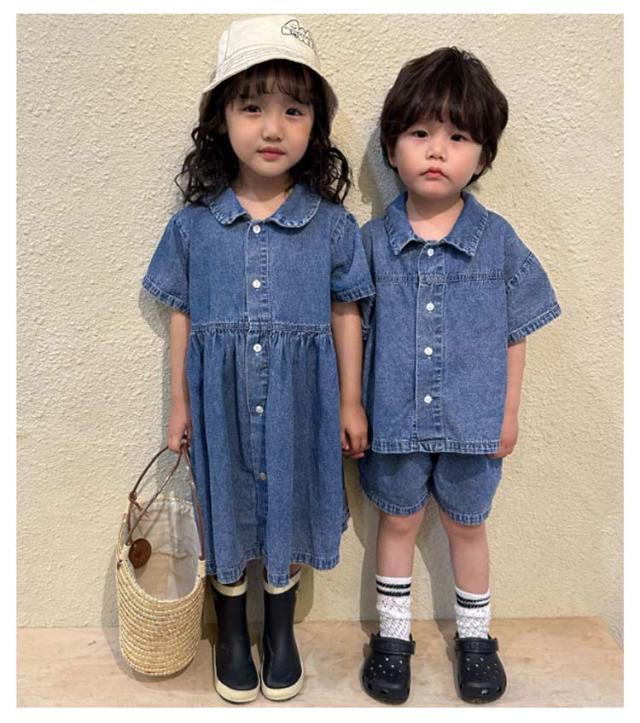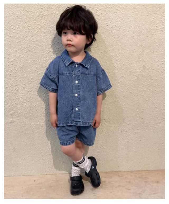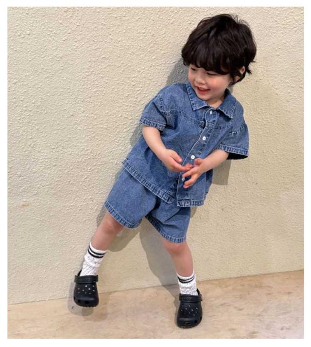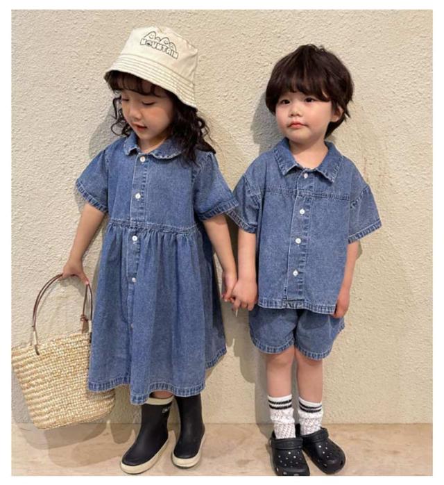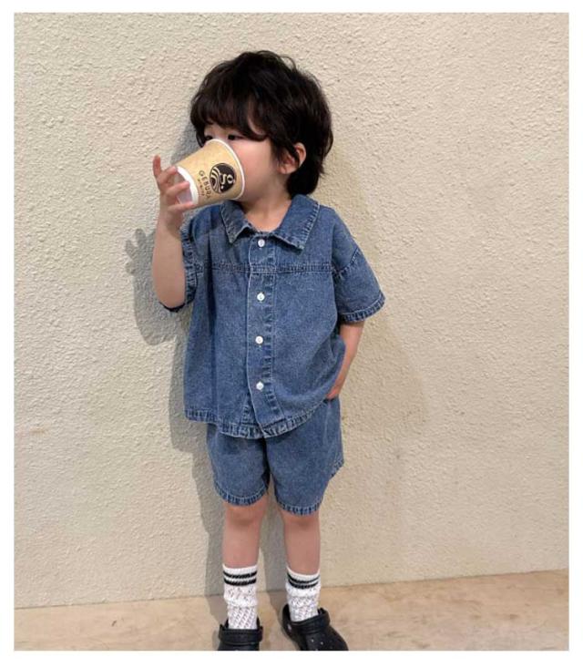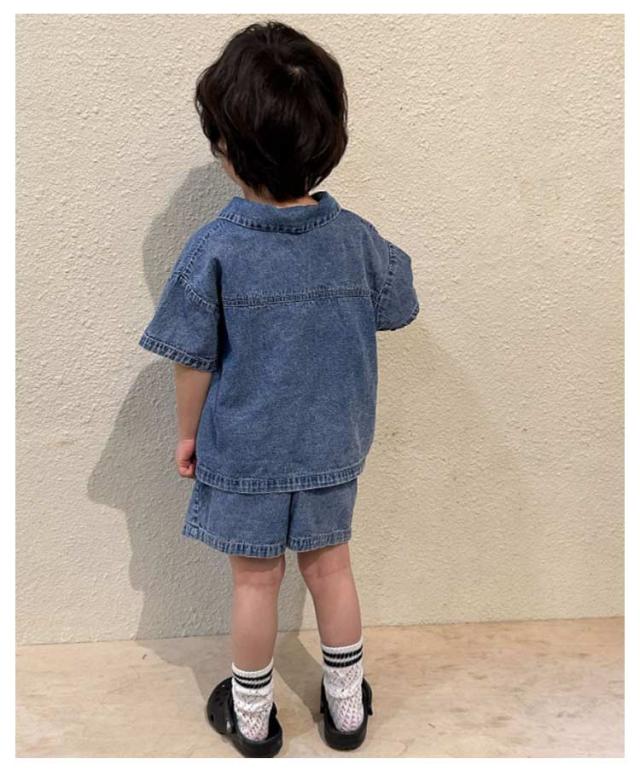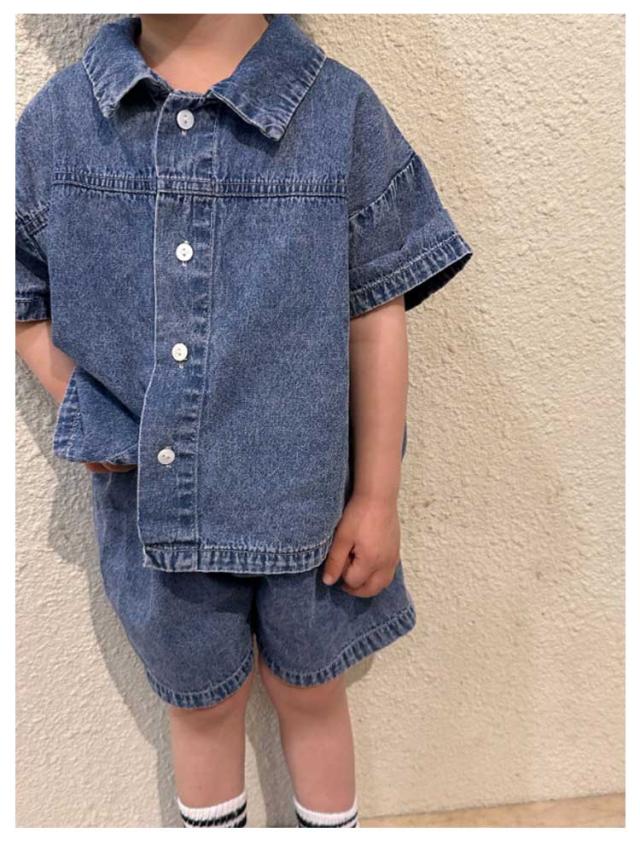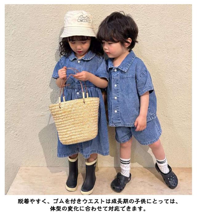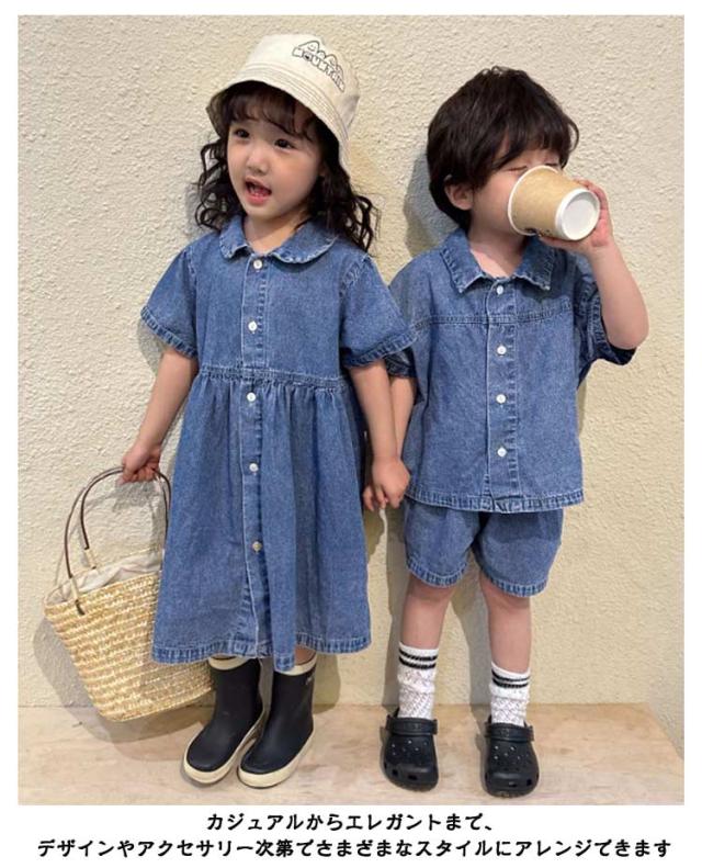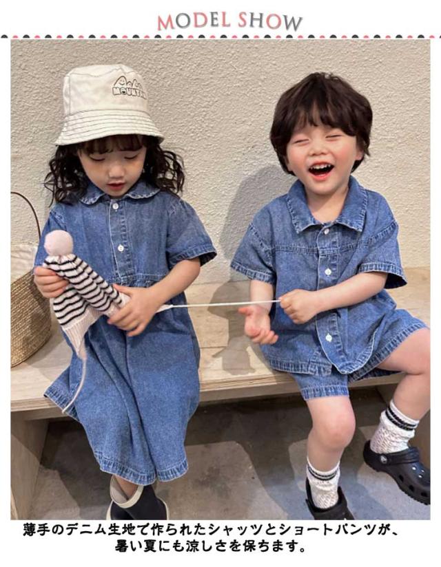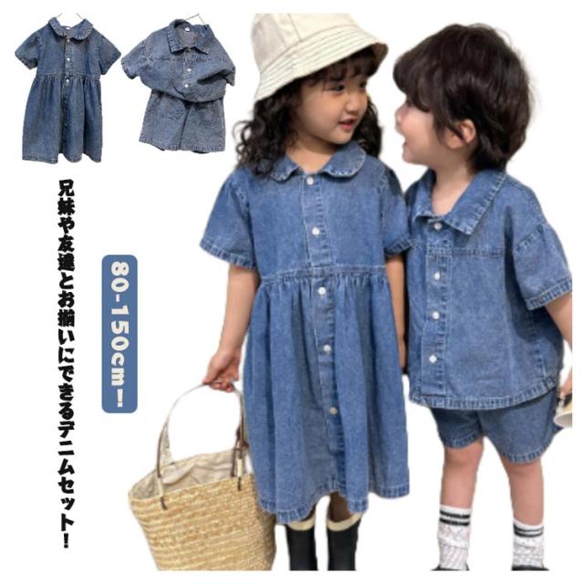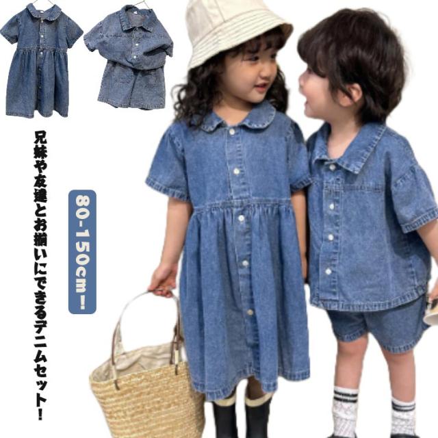 デニム 子供服 セットアップ 半袖 ハーフパンツ ベビー服 日常着 シャツ トップス 夏服 上下セット 兄妹お揃い 女の子 男の子 デニム 姉妹 幼稚園 春夏 ショートパンツ 普段着 かわいい おしゃれ 80/150対応 小学生