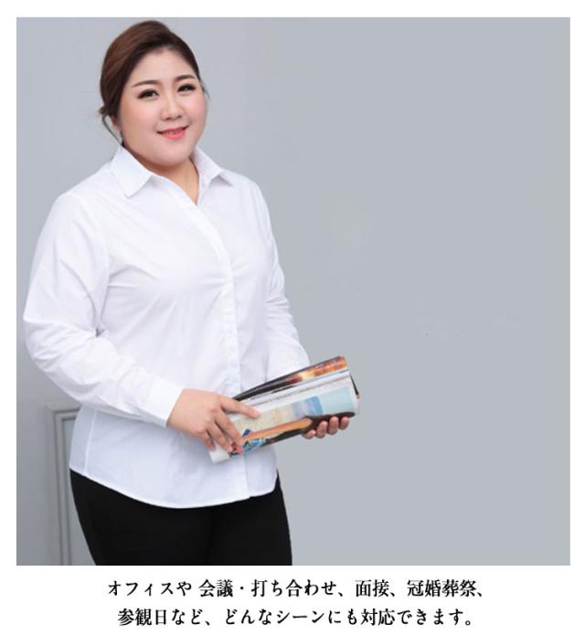 | シーンを選ばない、定番の大きいサイズワイシャツ。 無駄を無くしたすっきりスタイル、スカートにもパンツスタイルにも合わせやすくなっています。 オフィスや 会議・打ち合わせ、面接、冠婚葬祭、参観日など、どんなシーンにも対応できます。 小さいサイズSから大きいサイズ8XLまでの豊富なサイズ展開、ぽっちゃりさんも自分にピッタリ合うサイズが見つかります。 長袖も半袖も揃っているから、春夏から秋冬までオールシーズン活躍できます。 フロントは隠しボタン設計、上品でスッキリした印象に。 ややストレッチありますから、ストレスなく快適な着心地を実現。 | |