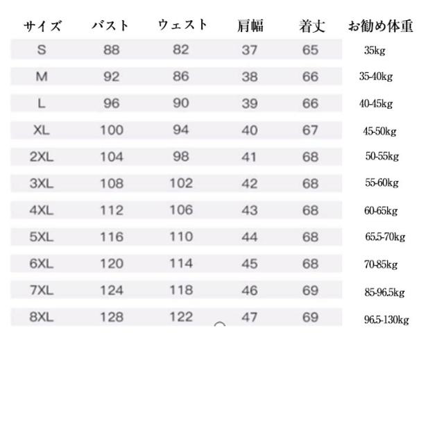 | サイズ | S M L XL 2XL 3XL 4XL 5XL 6XL 7XL 8XL |
