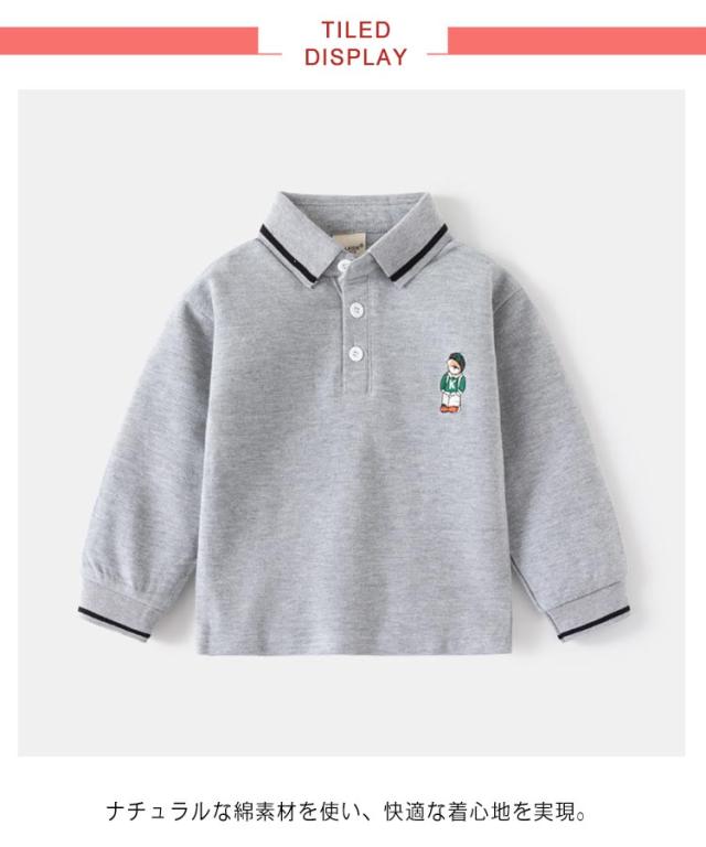 | 90〜130cm!どんな着こなしにも合わせやすい長袖ポロシャツ ナチュラルな綿素材を使い、快適な着心地を実現。 肌離れが良くさらっとした風合いで、春秋に活躍間違い無しの素材感です! シンプルなデザインだから飽きが来なくデイリーに着回ししやすい一着です。 | |