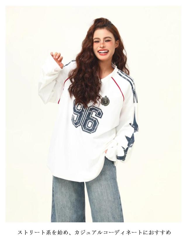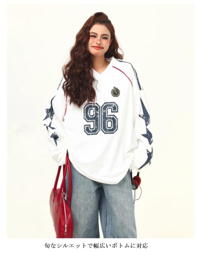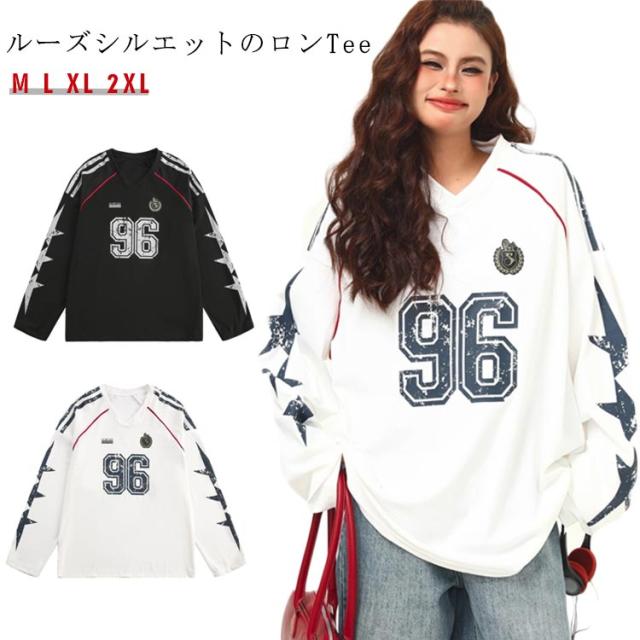 長袖 レディース Tシャツ ロゴTシャツ トップス カットソー ロンT 春 長袖 プリント Vネック メンズ ビッグ ドロップショルダーカットソー カジュアル