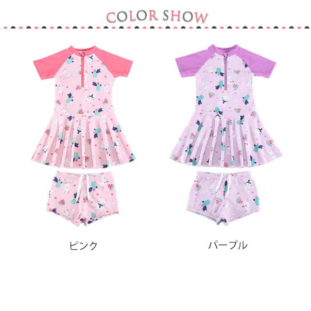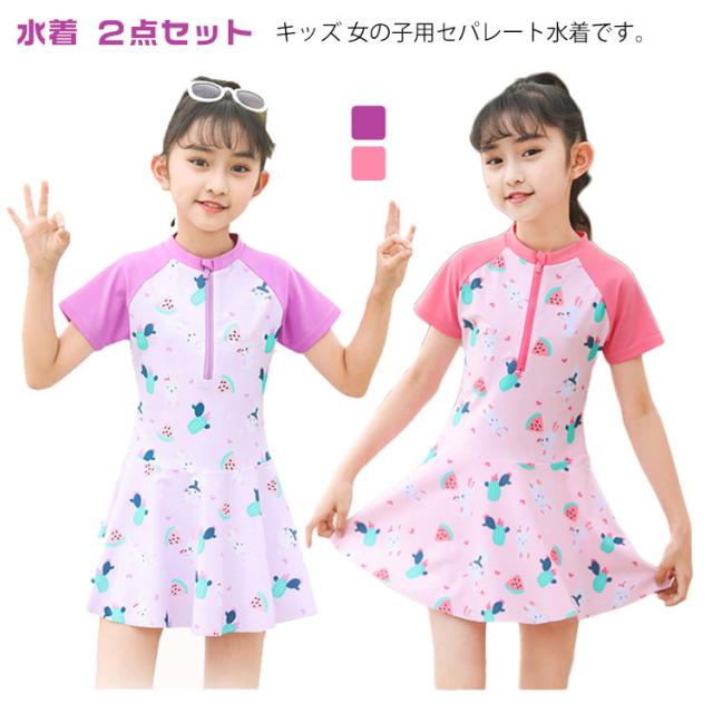 セパレート型 小学生 2点セット 水着 キッズ水着 女の子 半袖 トップス+スカート インナーパンツ付き 幼稚園 スクール水着 キッズ水着 ジュニア 高校生 子ども みずぎ ガールズ 中学生 プール 海 ビーチ リゾート