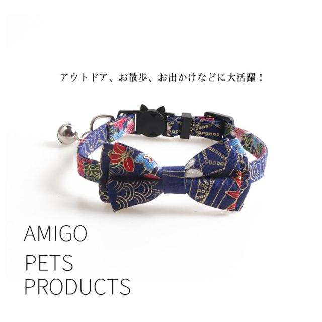 ネコ 猫用 軽量 鈴付き 首飾り 子犬 首輪 猫 セーフティバックル付き 可愛い 猫 サイズ調整可能 ペット首輪 和風 桜柄 プレゼント