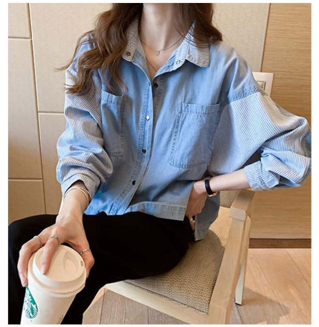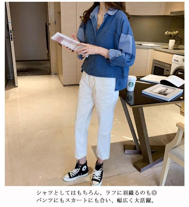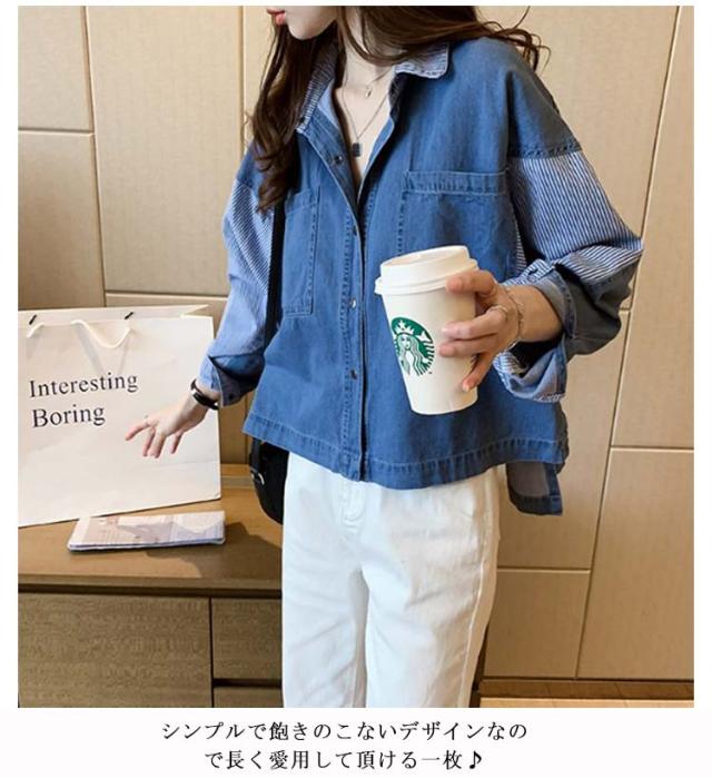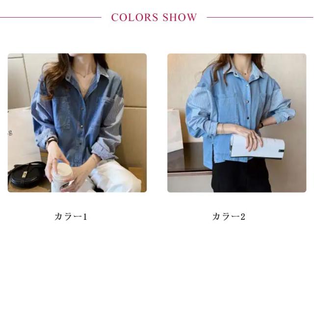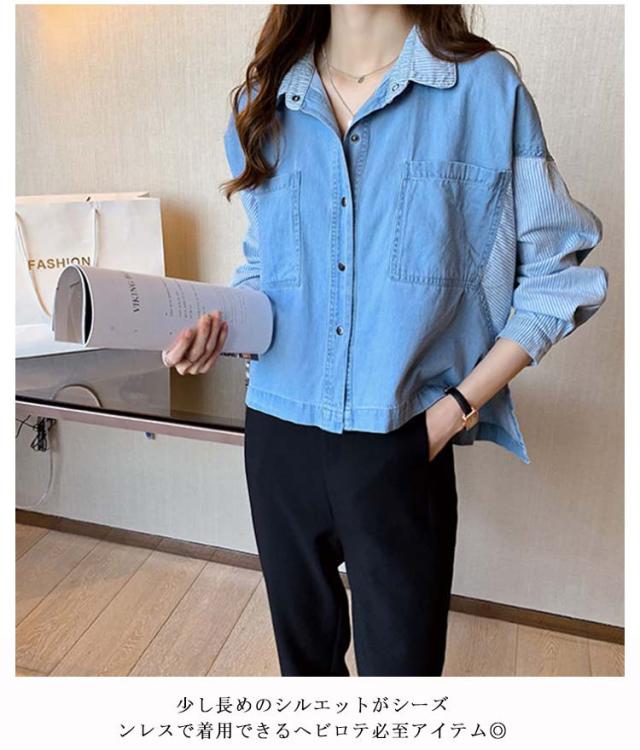デニムシャツ レディース Gジャン ロングシャツ チュニック オーバーサイズ パッチワーク デニム 風 トップス ドルマン 体型カバー お尻が隠れる 二の腕カバー 羽織 無地 大きいサイズ カジュアル 大人 春夏