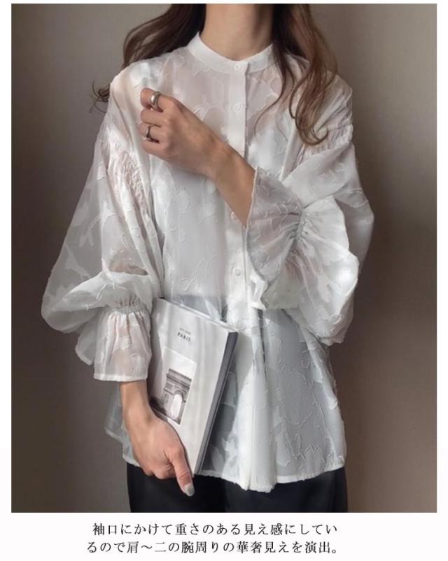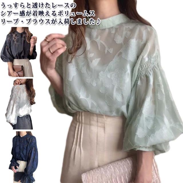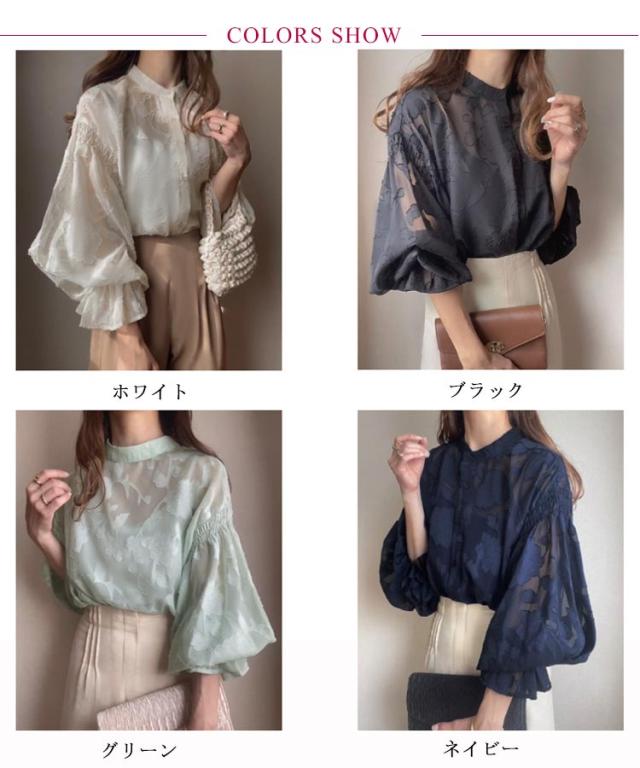 ボリューム袖ブラウス トップス フリル ブラウス 前後2way フラワー 刺繍 レース バンドフリルボリューム袖 ドロップショルダー 春 夏 トップス 大人プルオーバー 大人可愛い オシャレ 体型カバー ゆったり ホワイト ブラック グリーン ネイビー