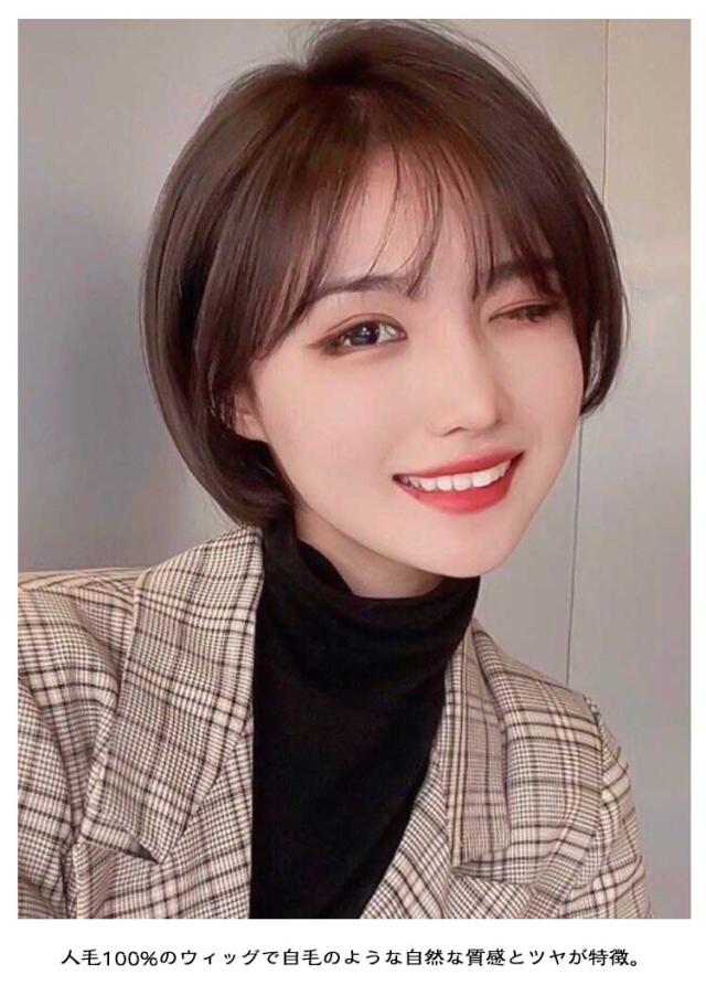 | フルウィッグ 人毛100% 人毛100%のウィッグで自毛のような自然な質感とツヤが特徴。 360°どこから見ても頭の形を綺麗に見せてくれる丸みショートボブは、全ての顔型と相性抜群のヘアスタイル。 キャップは通気性のいいメッシュ素材を使っているので着用感がとても楽ちん! | |