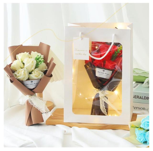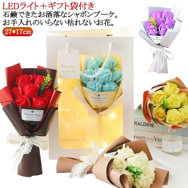 ギフト 薔薇 ギフト袋付き ソープフラワー プチギフト 誕生日祝い 花束 ブーケ 花 石鹸 7輪 枯れない花 誕生日祝い バラ シャボンブーケ 卒園 卒業 ホワイトデー LEDライト 母の日 発表会 卒業祝い 敬老の日 お祝い 花 おしゃれ プレゼント ギフト