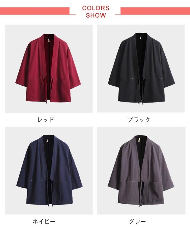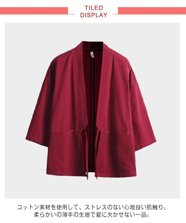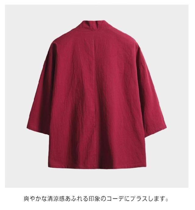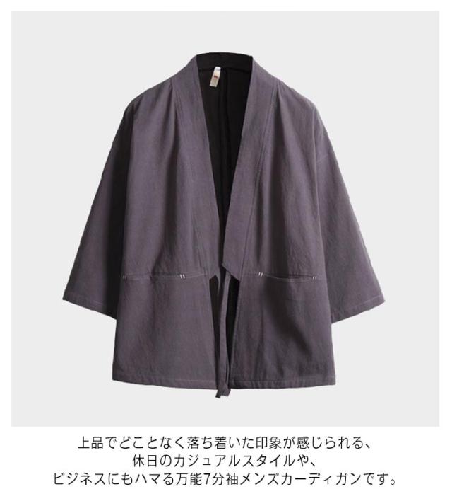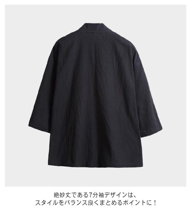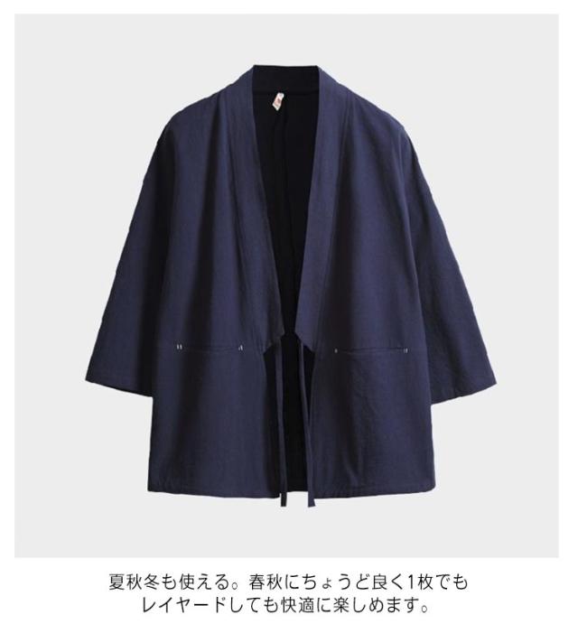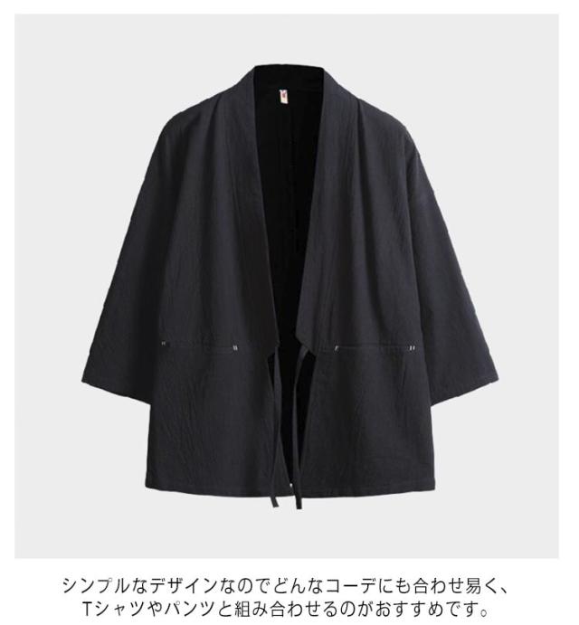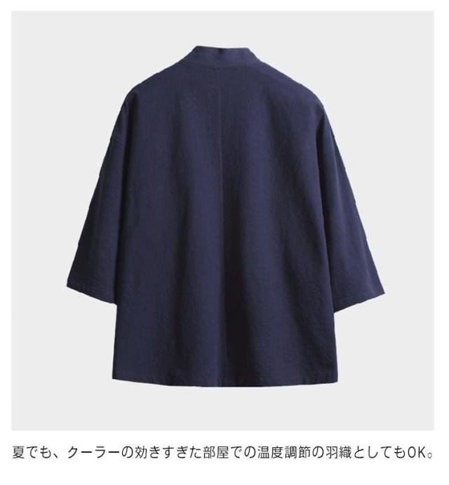 無地 羽織 七分袖 カーディガン 夏 半被 和風 男性用 半纏 祭り 和服 春 甚平 男性用 メンズ 法被 大きいサイズ ゆったり 羽織 カジュアル おしゃれ 薄手 着物 綿麻 おしゃれ トップス 体型カバー 作務衣 シンプル