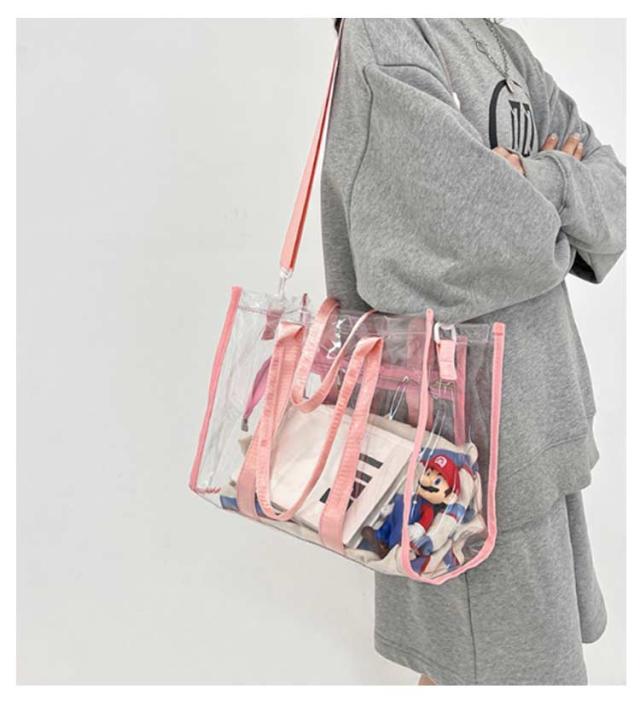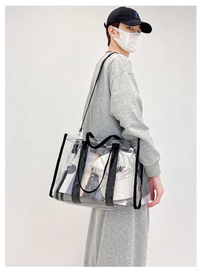 クリアバッグ トラベルかばん 透明 クリアトラベルバッグ ショルダーバッグ おしゃれ トートバッグ レディース 2WAY ビニールバッグ 大きめ プールバッグ PC ファスナー付き トート ショルダー ビーチバッグ 温泉バッグ 推し活