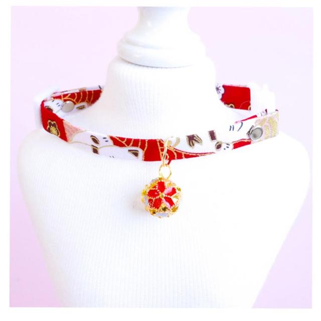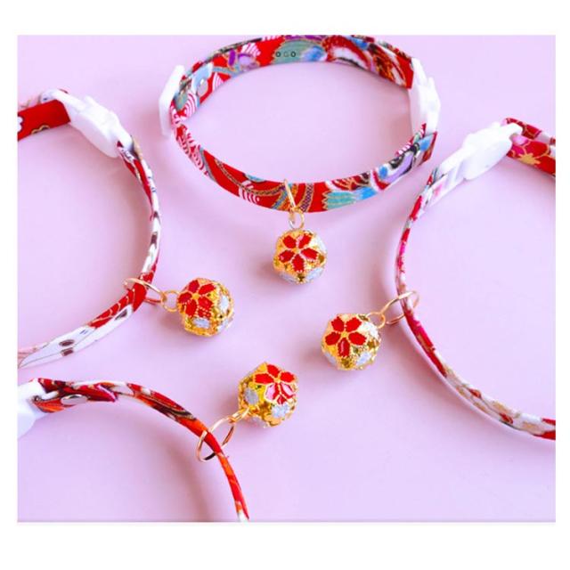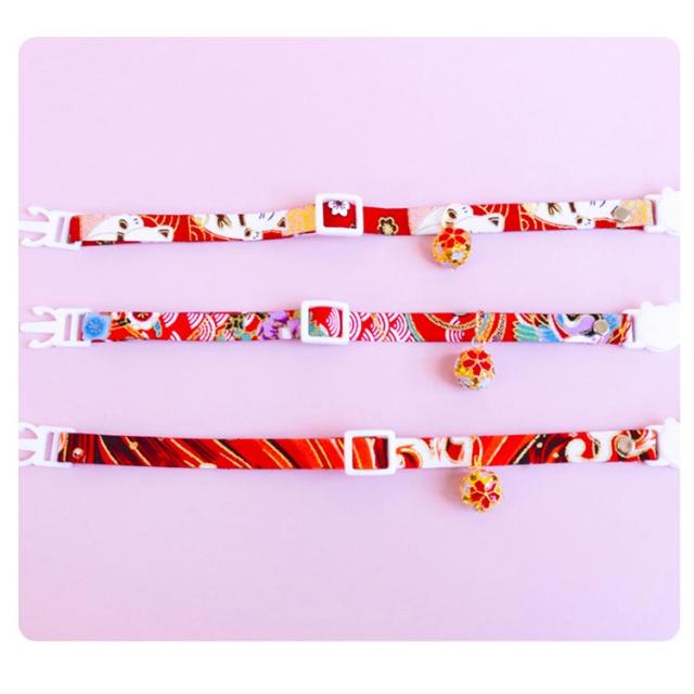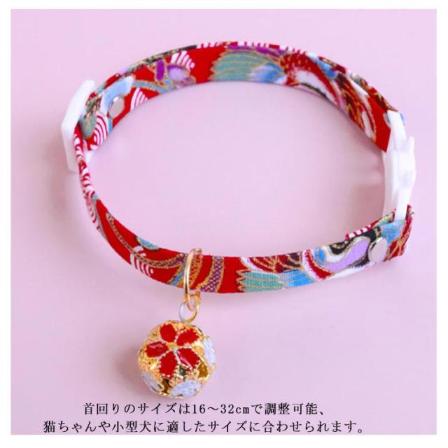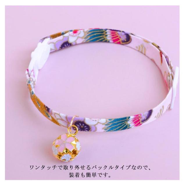 可愛い セーフティバックル付 首輪 猫の首輪 猫用 和柄 チョーカー サイズ調節可能 鈴付き 猫首輪 軽い 桜柄 猫用 ペット用 小型犬 ペットグッズ