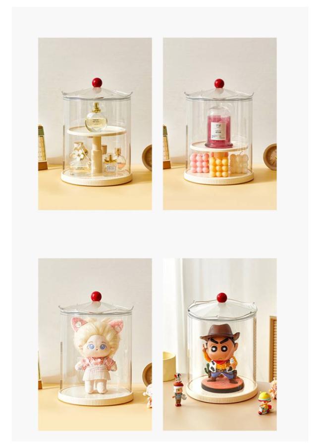 | 透明のコレクションケース。 フィギュアや模型を展示するために設計されており、高透明素材を使用しており、コレクションを美しく見せ、ディスプレイ効果が抜群です。 防塵デザインにより、ホコリを防ぎ、フィギュアを常に清潔で輝かしい状態に保ちます。 回転式昇降機能が搭載されており、360度回転でき、展示角度を自由に調整することができ、細部まで見ることができます。 2段階設計で、複数のフィギュアを収納でき、展示と収納が一体になり、スペースを効率的に活用できます。 シンプルでスタイリッシュな外観は、ディスプレイボックスとしてだけでなく、インテリアとしてもお部屋に素敵に馴染みます。 可愛いデザインで、お大切なフィギュアにぴったり、お友達への素敵なプレゼントにも最適。 | |