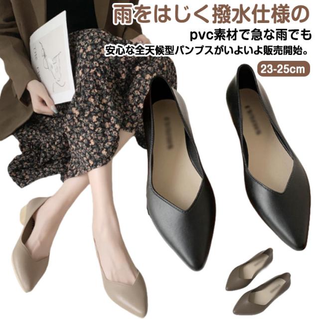 レインパンプス レインシューズ レディース 通勤 防水 ヒール低め ポインテッドトゥ パンプス 晴雨兼用 バレエ パンプス レディース おしゃれ レイン パンプス 痛くない 履きやすい 雨靴 アウトドア 梅雨対策 23−25cm