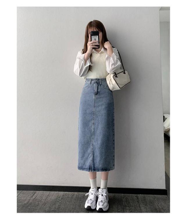 デニムスカート バックスリット レディース ロングスカート 薄手 ミディアム丈 スカート デニムスカート ひざ下 きれいめ お洒落 無地 ヴィンテージ風 ハイウエスト