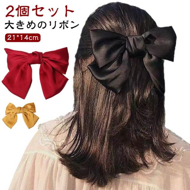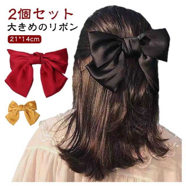 バレッタ バレッタ リボン リボン 黄色 サテン ヘアアクセサリー 白 ヘアクリップ 黒 赤 リボン 2個セット ビッグ ネイビー 紺 グリーン ブラック リボン型 ピンク レディース 子供 キッズ 発表会 衣装 卒業式 推し活 ダンス