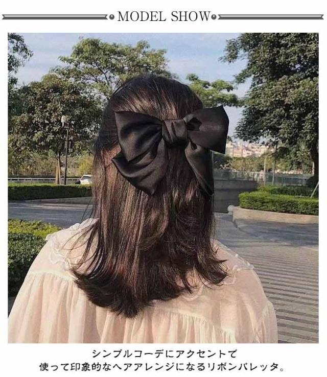 | 2個セット シンプルコーデにアクセントで使って印象的なヘアアレンジになるリボンバレッタ。 ヘアアレンジが苦手な方でもサッとまとめ髪が出来るので、1つあると便利。 | |
