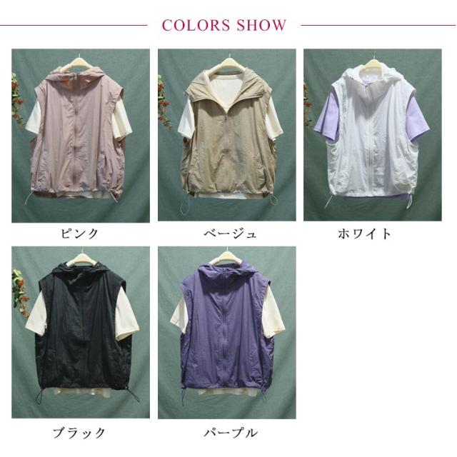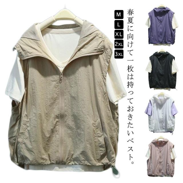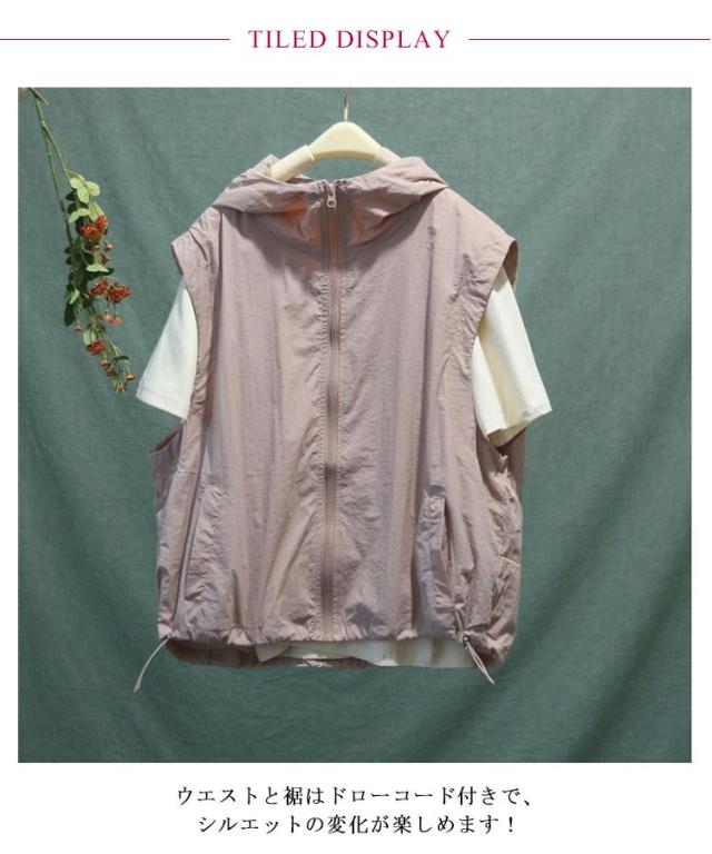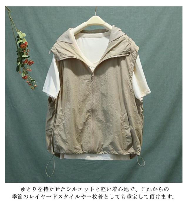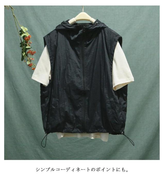 フード付き ノースリーブ レディース ベスト トップス アウター パーカー 重ね着 ベスト 薄手 ジャケット 無地 スポーツベスト 前開き 羽織り レイヤード ライトアウター 春 夏 秋 大人 着回し 涼しい ひんやり UVカット