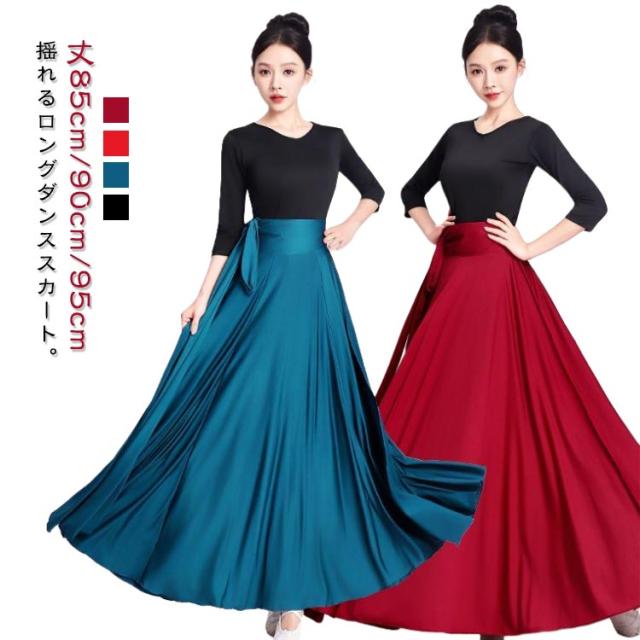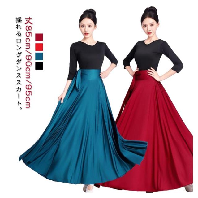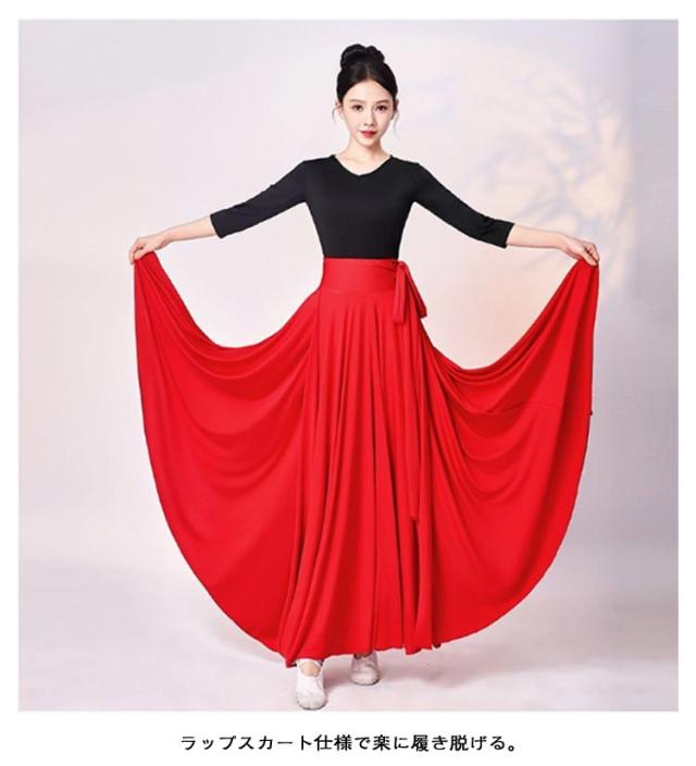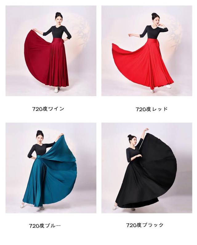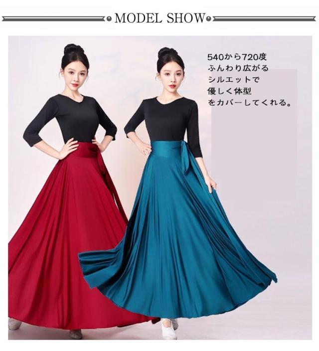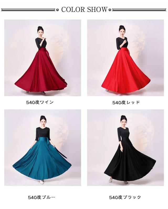 広がる 540度 フレアスカート ロングスカート ベリーダンス 広がる ラップスカート ロング丈 スカート 90cm 720度 ダンス衣装 フラメンコ 社交ダンス ラテンダンス パソドブレ 大きい裾 レッスン 社交ダンス 85cm