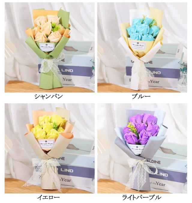 | 石鹸できたお洒落なシャボンブーケ。お手入れのいらない枯れないお花 石鹸でできているので、きれいなまま飾っておくことができる。 見た目の華やかさからプレゼントとして人気です。 枯れない為、お手入れ不要、長くお楽しみ頂けます。 | |