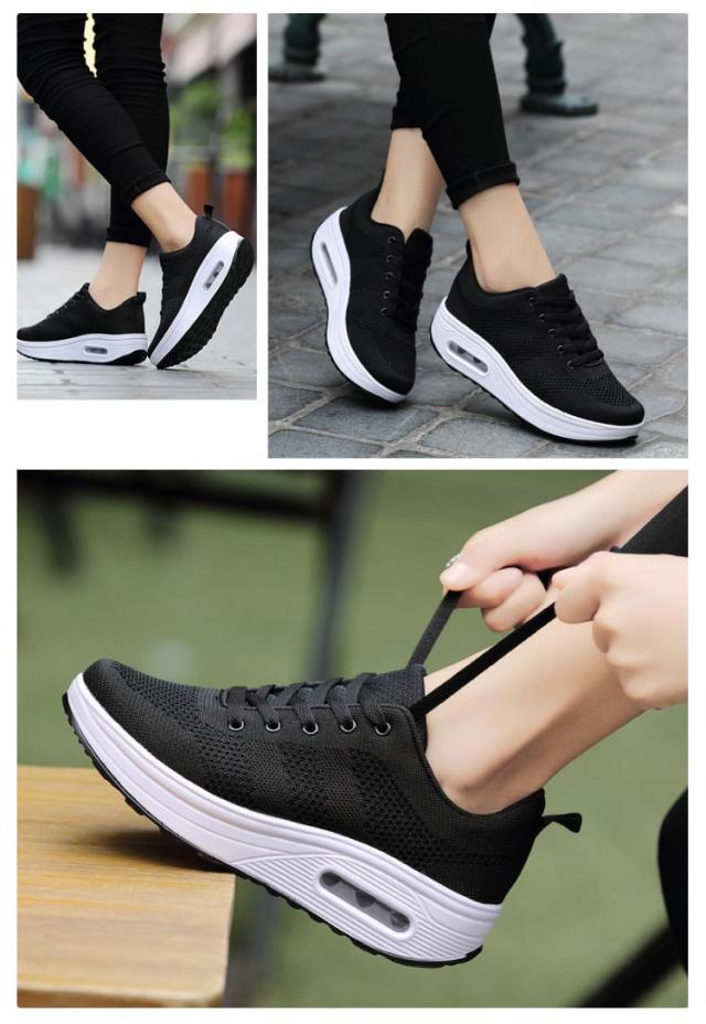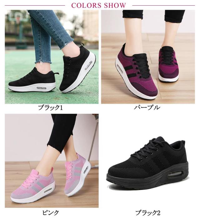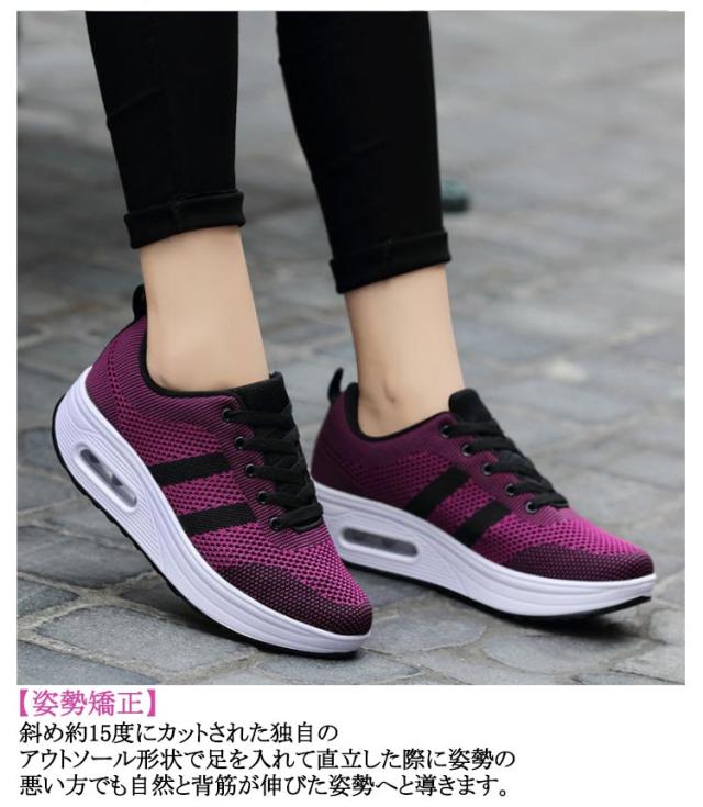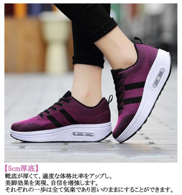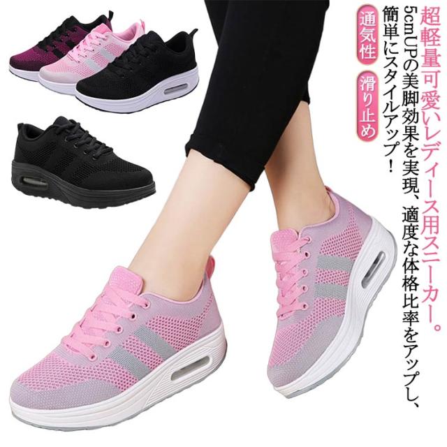 船型底 厚底 レディース 厚底スニーカー シューズ ランニングシューズ 幅広 ダイエットシューズ ナースシューズ 疲れない ウォーキングシューズ レースアップ 疲れにくい 静音 メッシュ エアクッション 5cm 蒸れない 通気性 軽量 ジム スポーツシューズ 黒