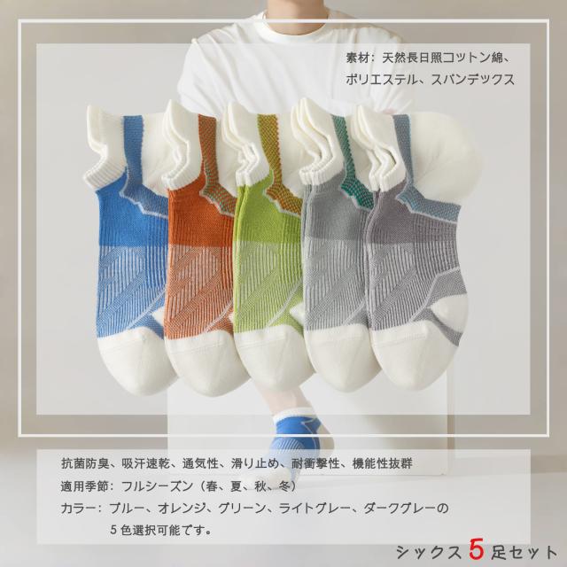 靴下 メンズ ソックス 作業用靴下 くるぶしソックス 防臭吸汗 アンクルソックス 春夏秋冬用 スニーカーソックス カラフル 5足組 カジュアル スポーツ 綿 ショートソックス 男性 四季適用