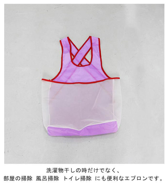 | 家事の味方!便利なランドリーエプロン。 洗濯物干しの立ったりしゃがんだりを省略し作業効率UP◎ 洗濯カゴを使わなくても洗濯機から直接、おなかのポケットに入れて、洗濯竿まで持っていけます♪ 屈むこともなく立ったまま、素早く洗濯物を干すことができます。 重い洗濯物をしっかり支え肩に負担を掛けにくい幅広の肩ヒモ。 コンパクトに畳めるので収納場所にも困りません! 洗濯物干しの時だけでなく、部屋の掃除 風呂掃除 トイレ掃除 にも便利なエプロンです。 | |