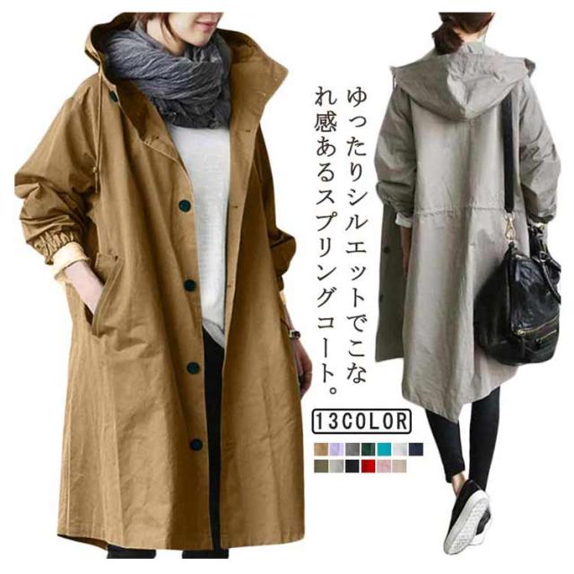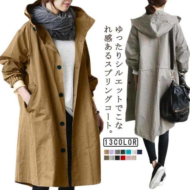コート レディース ロングコート トレンチコート ミドル丈 春 アウター 春服 春コート トレンチコート フード付き ライトアウター ロング丈 ブルゾン 秋 アウター ジャケット ゆったり 大きいサイズ マウンテンパーカー 送料無料