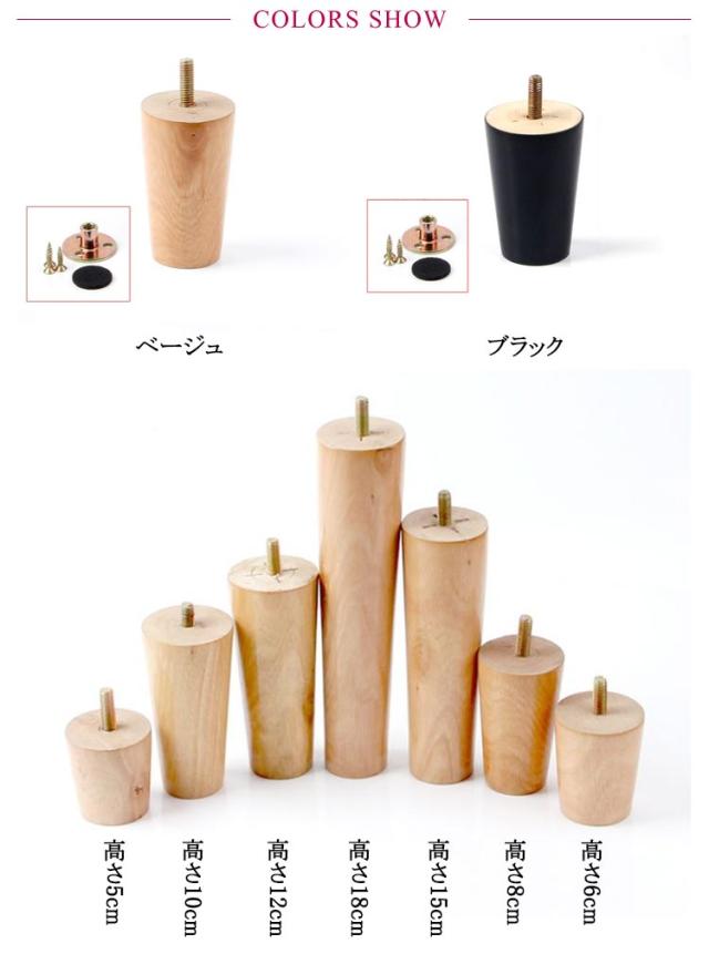 キャビネット足 ソファー 継ぎ脚 木製脚 6cm 家具足 足の交換用 ソファ M8 テーブル足 机足 4本セット 18cm 頑丈 テーブル ベッド 高さ調整 4本セット サポート脚 かさ上げ台 家具パーツ 5cm 置き換え 8cm 10cm 12cm 15cm ソファ足 20cm ベージュ ブラック 黒