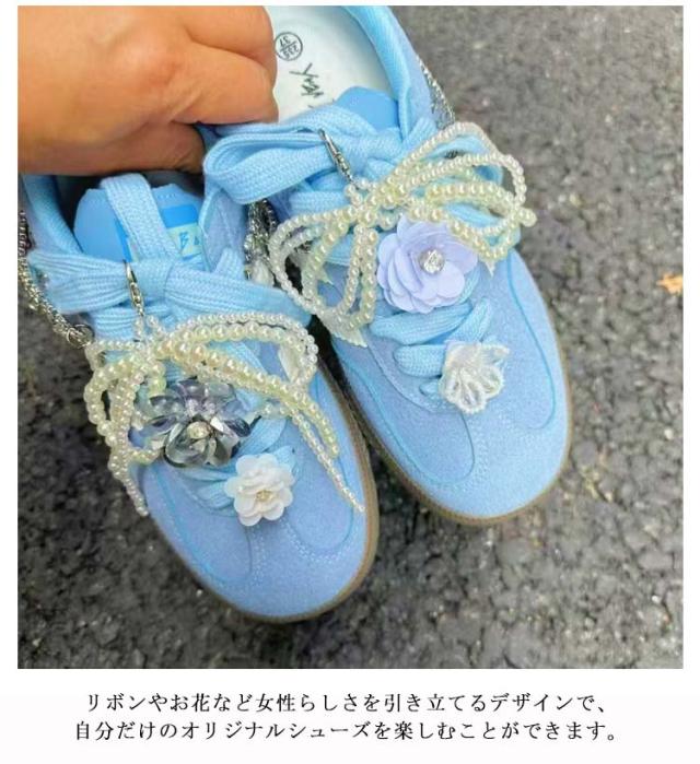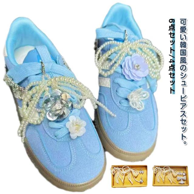 シューピアス 靴紐 ピアス ビジュー アクセサリー シューズ ジュエリー パーツ スニーカー フェイクパールリボン ハート 花 シューピアス シューズピアス スニーカーピアス シューチャーム ins映え 韓国風 蝶結び 靴ひも