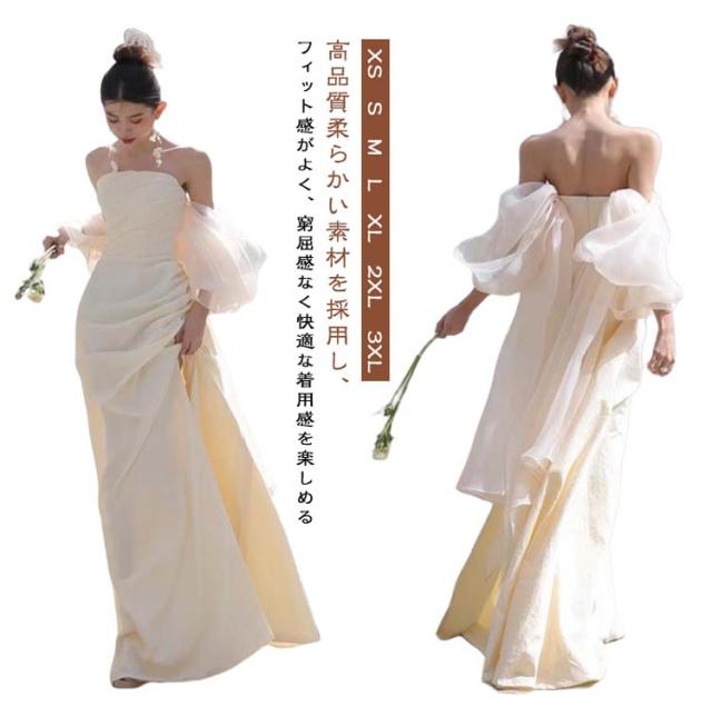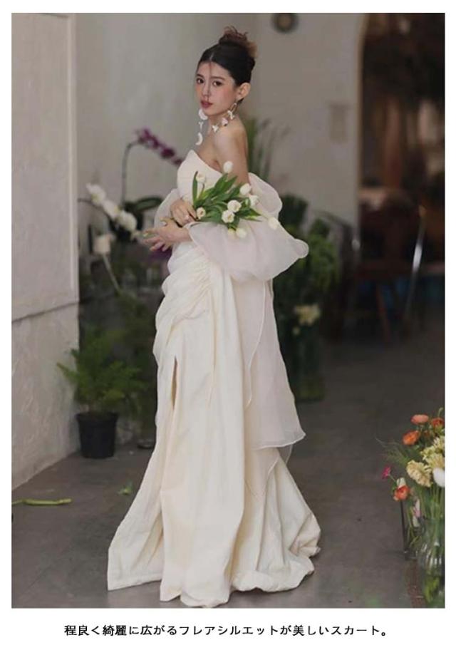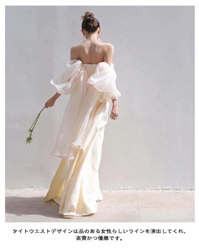 オフショル 花嫁二次会ドレス 白 花嫁 ウェディングドレス 花嫁かわいい ロング 結婚式 前撮り オフショル 二次会 オフショルダー 袖あり 白 ドレス ドレス 白いドレス ドレス マーメイド フォトウェディング ベアトップ 春 夏 秋 冬 可愛い