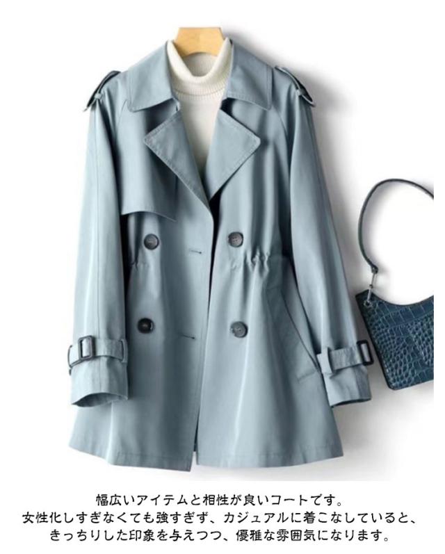 | 【M〜4XL】【6color】 春の定番スプリングコート♪ カジュアルにもきれいめコーデにもマッチする春秋向けライトアウターです。 しわのウエストラインデザインは、装飾的な役割を果たすだけでなく、下半身の体の割合を伸ばすこともできます。優美なS型曲線を形成します。 幅広いアイテムと相性が良いコートです。女性化しすぎなくても強すぎず、カジュアルに着こなしていると、きっちりした印象を与えつつ、優雅な雰囲気になります。 バックスタイルも可愛く決まるデザイン♪フレアに広がる裾が魅力的。 お尻までしっかり隠れる丈感で肌寒い日の装いにもぴったり! 裏地付きで冷気を通さず、しっかり防寒対策できます。 | |