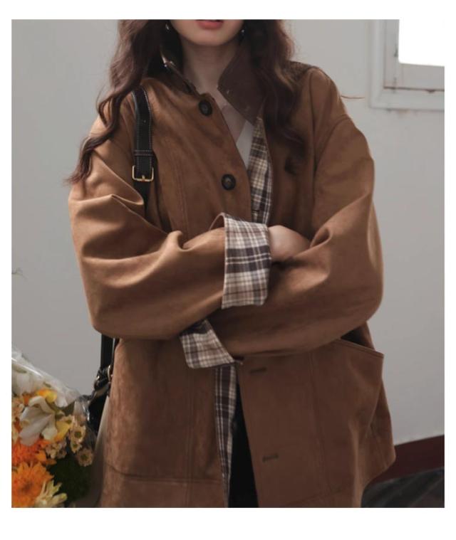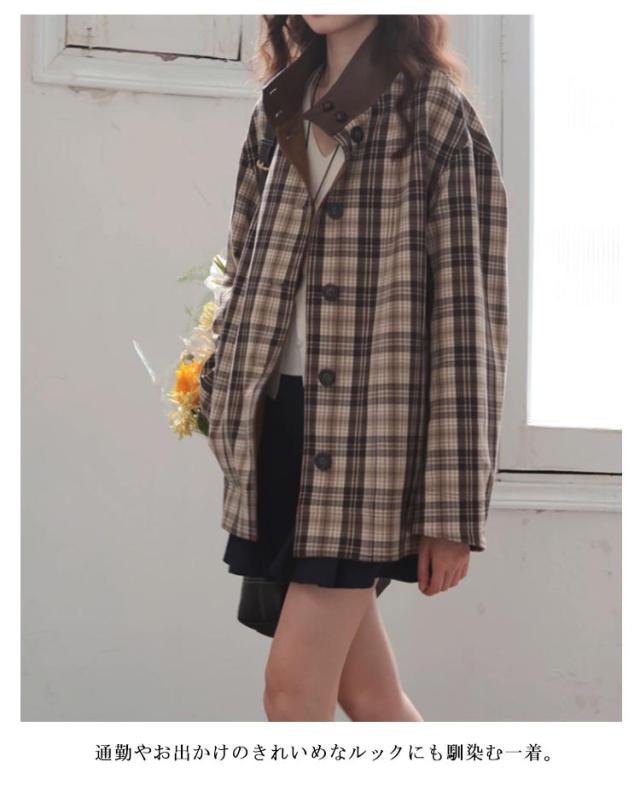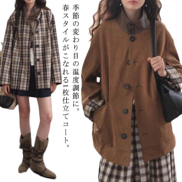 レディース ステンカラーコート トレンチコート トレンチコート オーバーサイズ アウター ステンカラー ステンカラーコート ジャケット チュニック丈 リバーシブル 羽織 ライトアウター チェック柄 きれいめ ビジネス 通勤 30代 40代