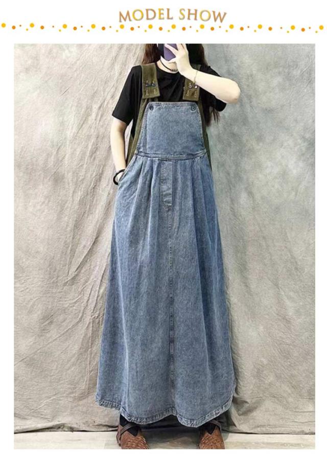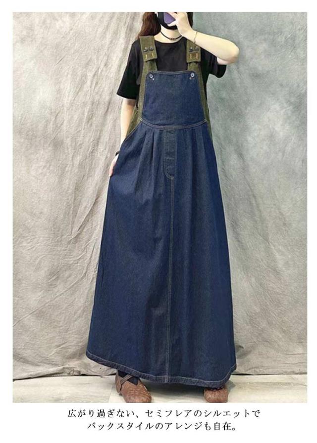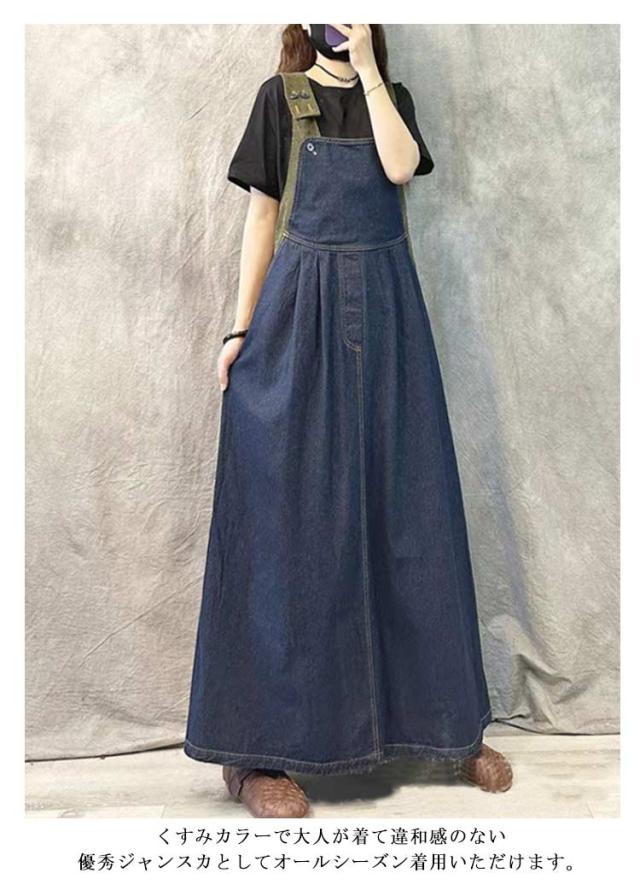 ジャンスカ ジャンパースカート デニム サロペット オーバーオール ワンピース オールインワン スカート レディース ロングスカート サロペットスカート つなぎ シンプル アメカジ ストリート系 体型カバー 古着風 ロングスカート