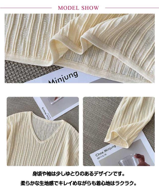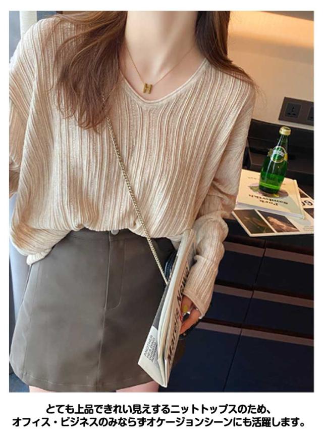 | で着回しやすいVネックニットプルオーバーです。 身頃や袖は少しゆとりのあるデザインです。柔らかな生地感でキレイめながらも着心地はラクラク。 見た目にもヘルシーな印象を与え、女性らしいナチュラルな雰囲気を演出してくれます。 1枚でオフィスカジュアルはもちろん、スーツのインナーとしても素敵に着こなせるよう首元の空きを調整。 とても上品できれい見えするニットトップスのため、オフィス・ビジネスのみならずオケージョンシーンにも活躍します。 | |