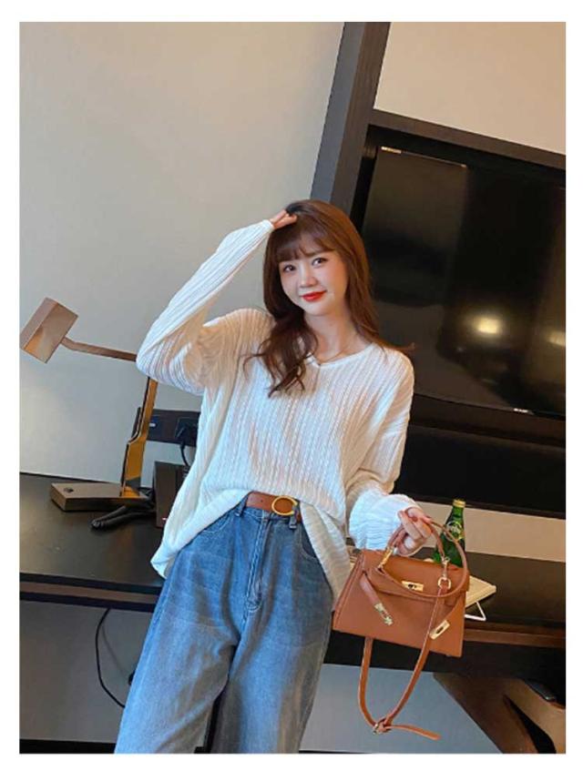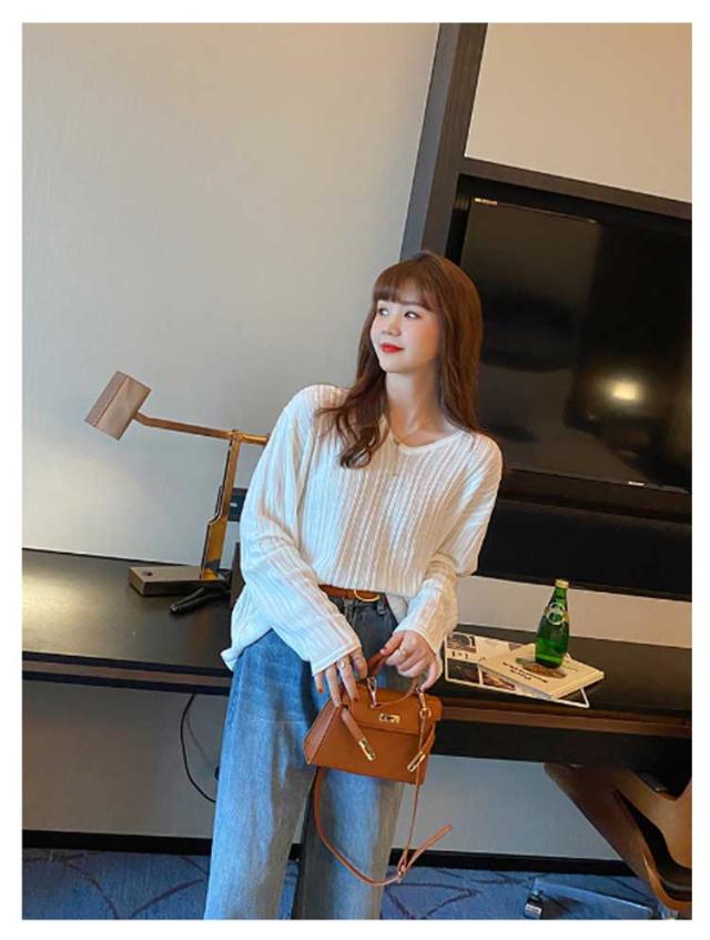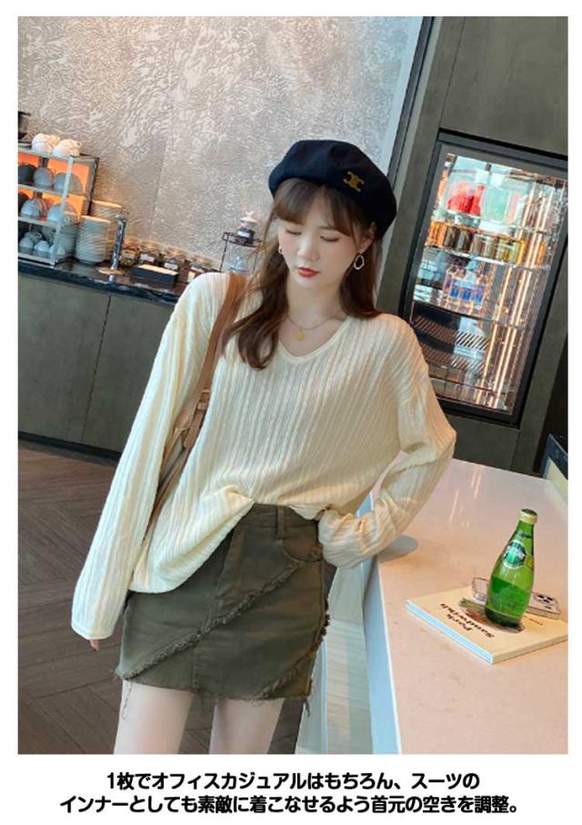 インナーセーター ロンT レディース 長袖Tシャツ ニット 無地 長袖 トップス Tシャツ セーター リブニット カットソー インナー スーツ インナー ストレッチ 着痩せ 長袖Tシャツ クルーネック インナーニット 春 秋 冬