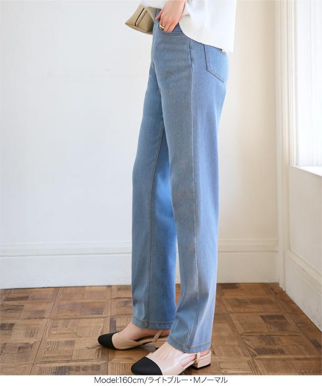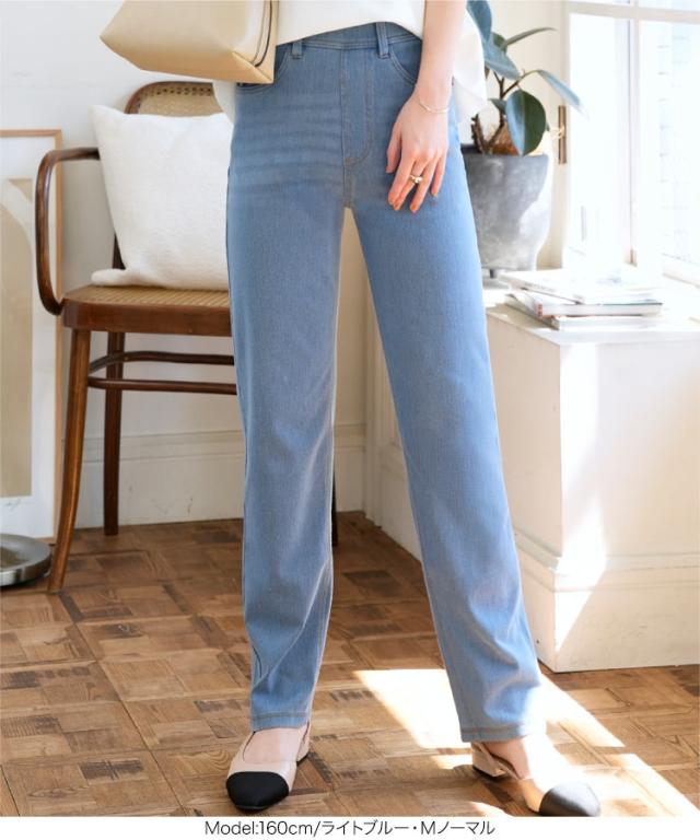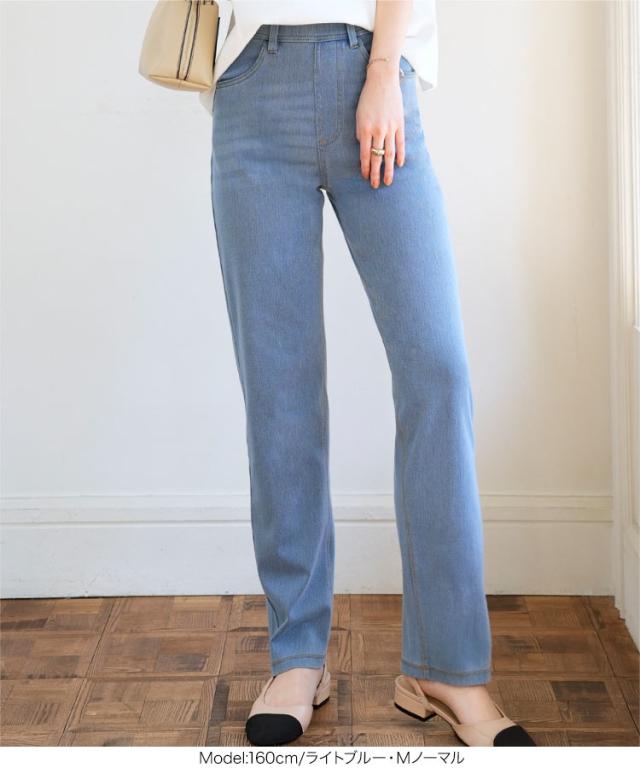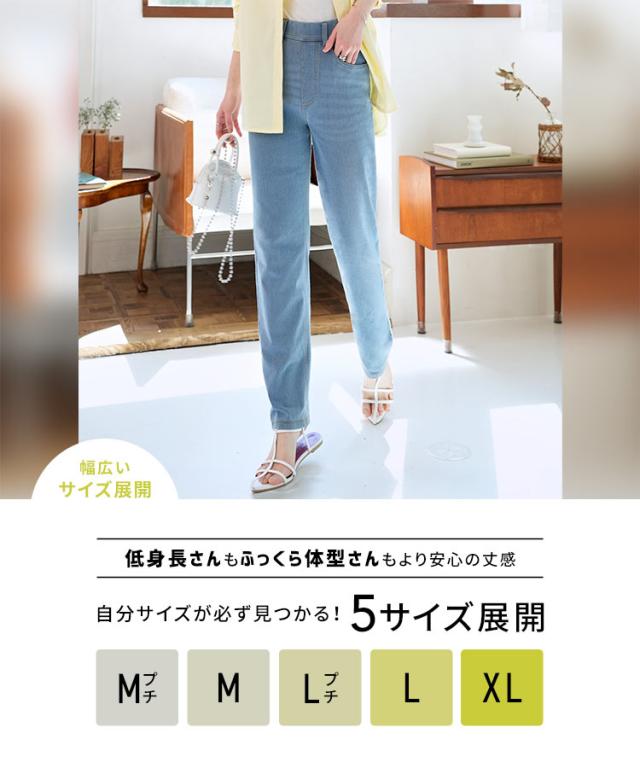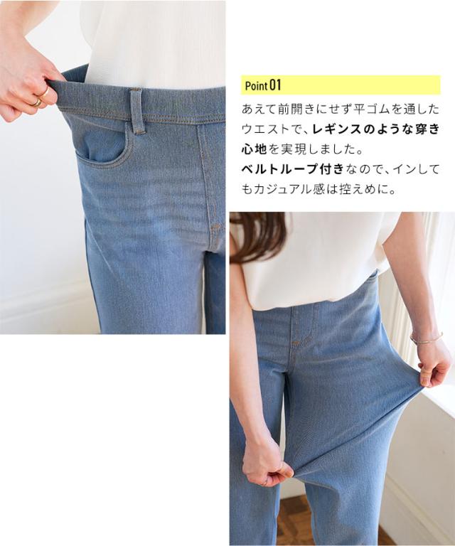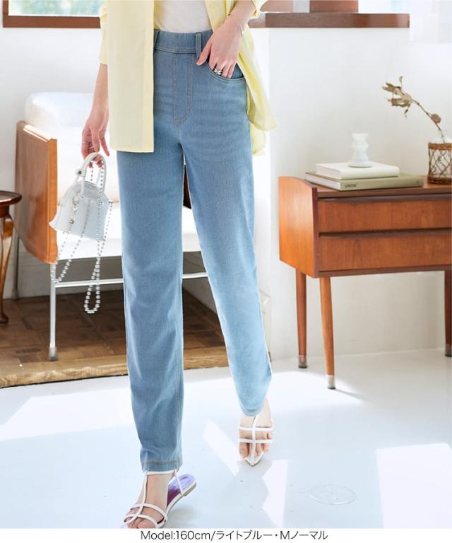 レギンスの快適さとデニムのスタイリッシュさを兼ね備えた、選べるサイズのデニムレギンス。伸縮性のある生地が程よくフィットし、動きやすさ抜群。ウエストはレギンスのような平ゴム仕様でストレスフリーな履き心地ながら、ベルトループ付きでトップスインも楽しめます。暑い夏に大活躍の、涼しい薄手生地。後ろのリアルポケットでインナーも響きにくくヒップアップ効果も◎【素材・サイズ感】ハイウエストデザインでしゃがんでも安心なのでお子様の公園やアクティブなシーンでも便利な1着。ストレートシルエットが脚のラインを拾いにくく、コンパクトな丈感がバランスの良い仕上がりに。選べるサイズ展開で、自分にぴったりの一枚が見つかるのも嬉しいポイントです◎スニーカーやパンプスとも相性抜群で、幅広いスタイルにマッチします。※キャンセル/変更不可※※お届けまでの日程について