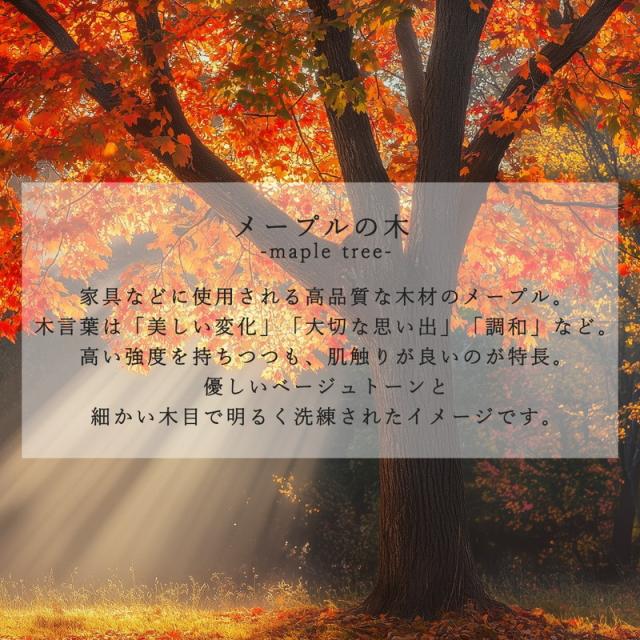 メープルの木は高い強度を持ち、肌触りが良く、つけ心地が抜群で明るめの色がナチュラルな印象を与えます。