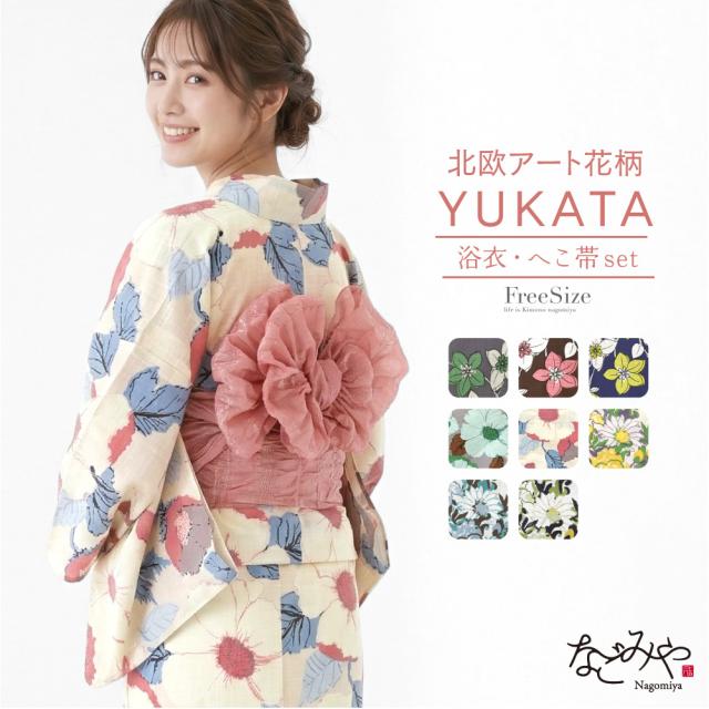 浴衣 セット レディース 夏用 北欧風 浴衣 兵児帯 2点セット レトロ モダン かわいい 高見え 夏祭り 夕涼み 花火 おしゃれ 大人 レディース 女性 10024587